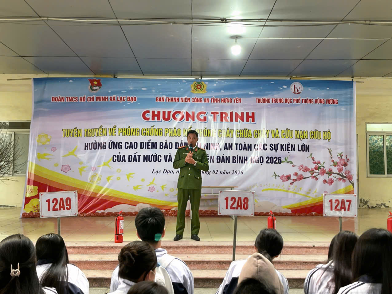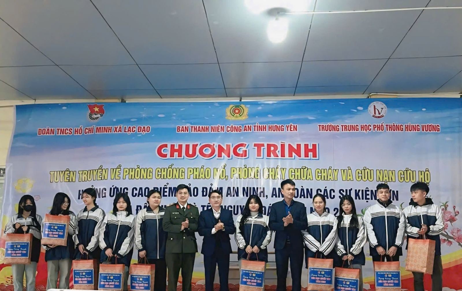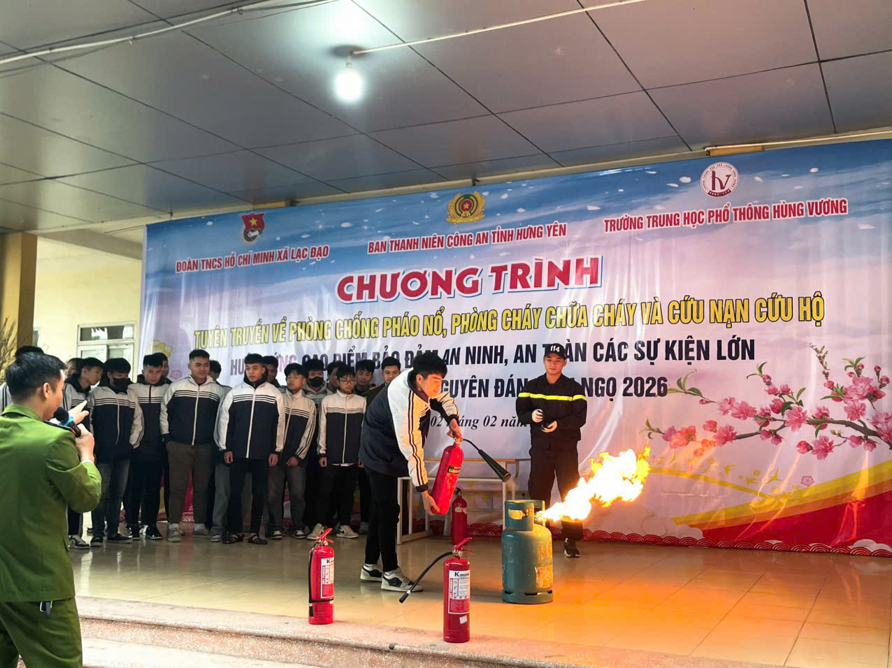Sáng ngày 02/02/2026, Ban Thanh niên Công an tỉnh phối hợp với Đoàn Thanh niên xã Lạc Đạo, Trường Trung học phổ thông Hùng Vương tổ chức Chương trình tuyên truyền, phổ biến, giáo dục pháp luật về phòng, chống sử dụng pháo trái phép; phòng cháy chữa cháy và cứu nạn, cứu hộ cho gần 1.400 học sinh, cán bộ, giáo viên, công nhân viên của nhà trường. Tham dự chương trình có đại diện Ban Thanh niên Công an tỉnh, Đoàn Thanh niên xã Lạc Đạo, Chi đoàn Công an xã Lạc Đạo và Ban Giám hiệu Trường THPT Hùng Vương.