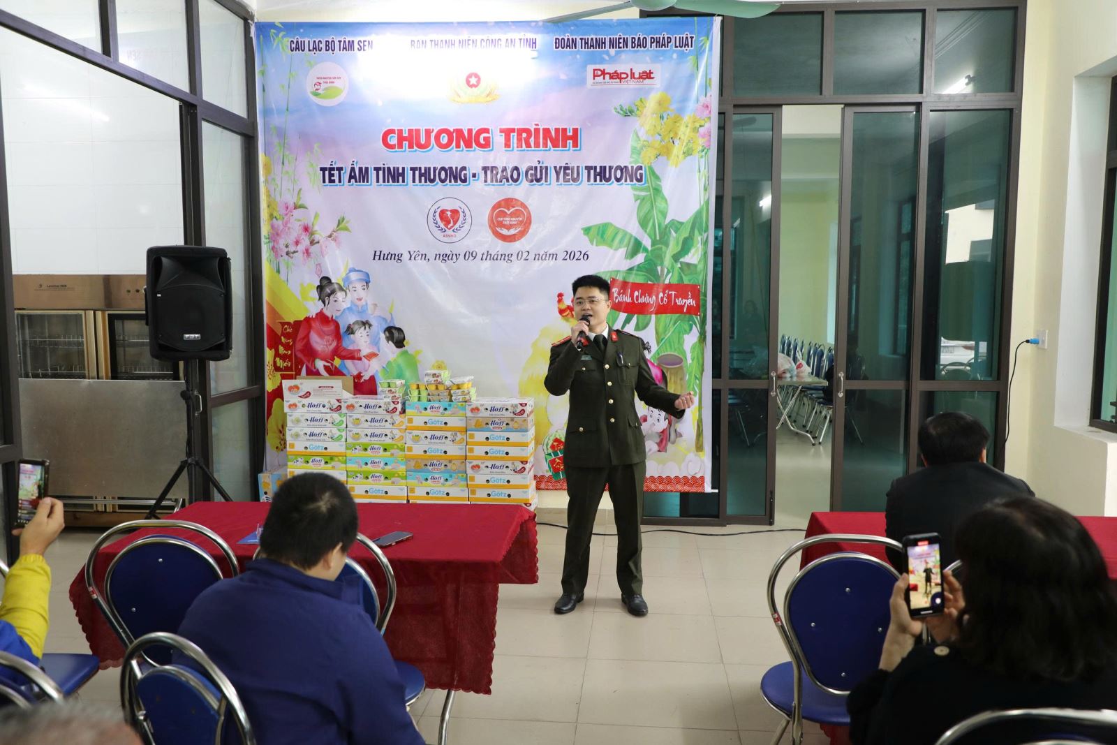 Tại Chương trình, Ban Thanh niên Công an tỉnh và các đơn vị đồng hành đã trao tặng 400 chiếc bánh chưng, 400 phần quà. Bên cạnh đó, Ban Thanh niên Công an tỉnh tổ chức các hoạt động tăng cường sự đoàn kết, gắn bó giữa lực lượng Công an với quần chúng Nhân dân; đoàn viên thanh niên Công an tỉnh, các cụ già, các em nhỏ, công nhân viên tại Trung tâm cùng nhau gói bánh chưng xanh, tái hiện nét đẹp văn hóa của dân tộc trong ngày Tết cổ truyền, giúp lưu giữ và lan tỏa giá trị truyền thống; tổ chức cắt tóc miễn phí cho các đối tượng bảo trợ; các tiết mục văn nghệ được trình diễn, mang lại tiếng cười, niềm vui và không khí Xuân rộn ràng cho mọi người.