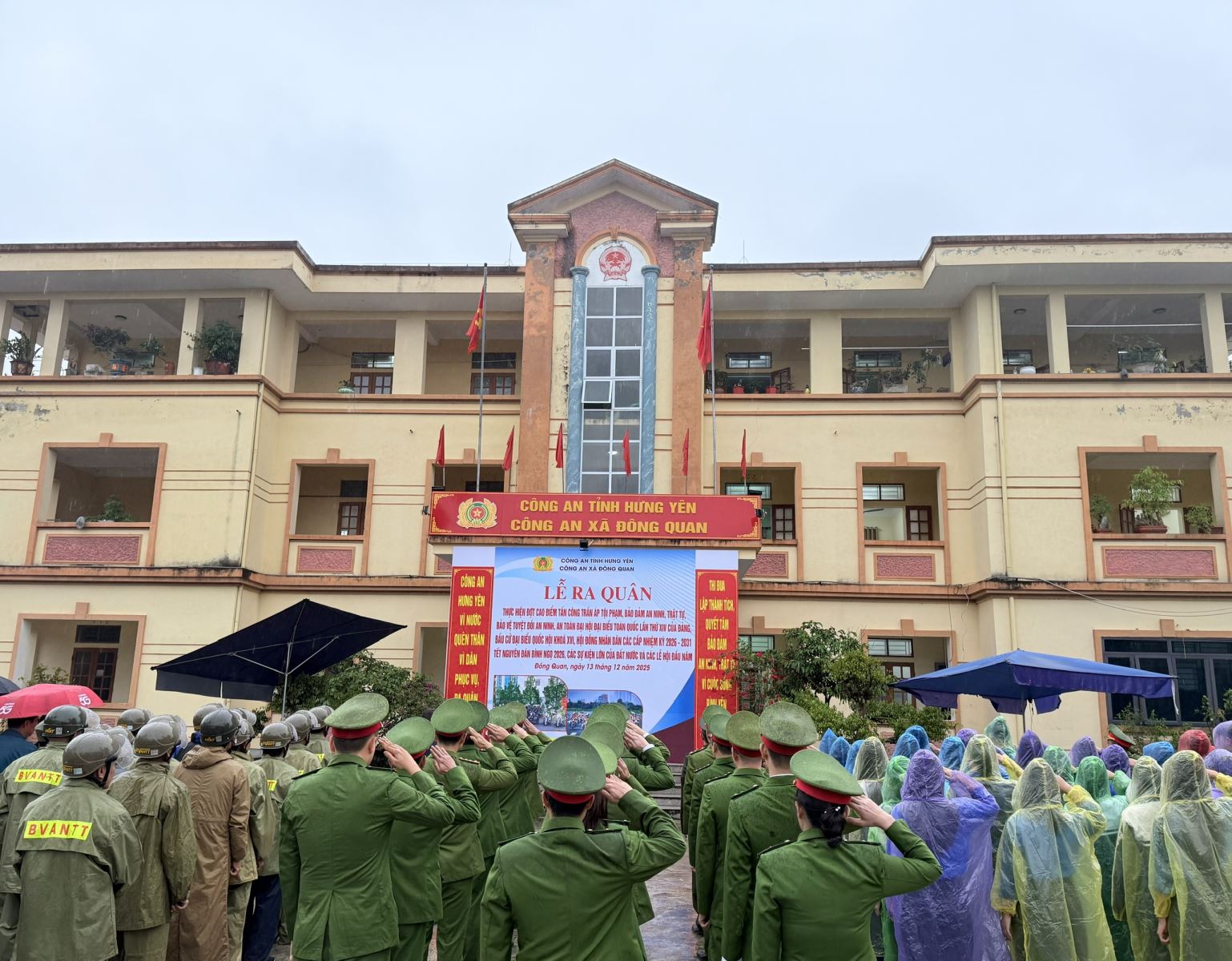 Hình ảnh buổi Lễ ra quân thực hiện đợt cao điểm tấn công trấn áp tội phạm của Công an xã Đông Quan trong đó quán triệt nhiệm vụ bảo vệ nền tảng tư tưởng của Đảng, đấu tranh phản bác các quan điểm sai trái, thù địch, giữ vững an ninh quốc gia, an ninh chính trị tại địa bàn