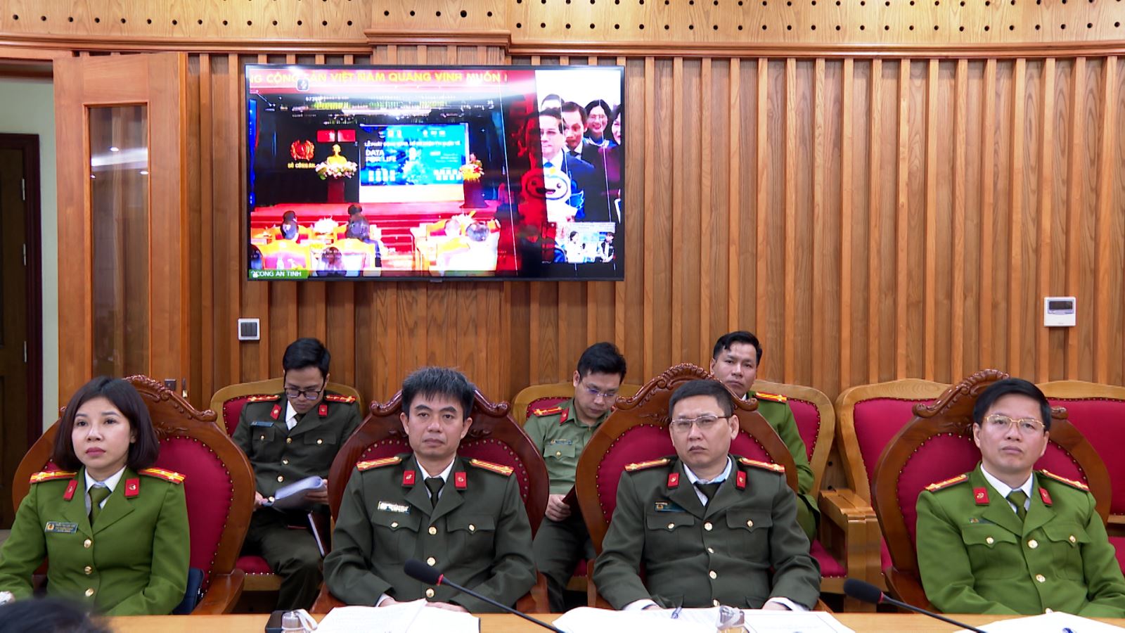 Toàn cảnh Hội nghị tại điểm cầu Bộ Công an và điểm cầu Công an tỉnh Hưng Yên