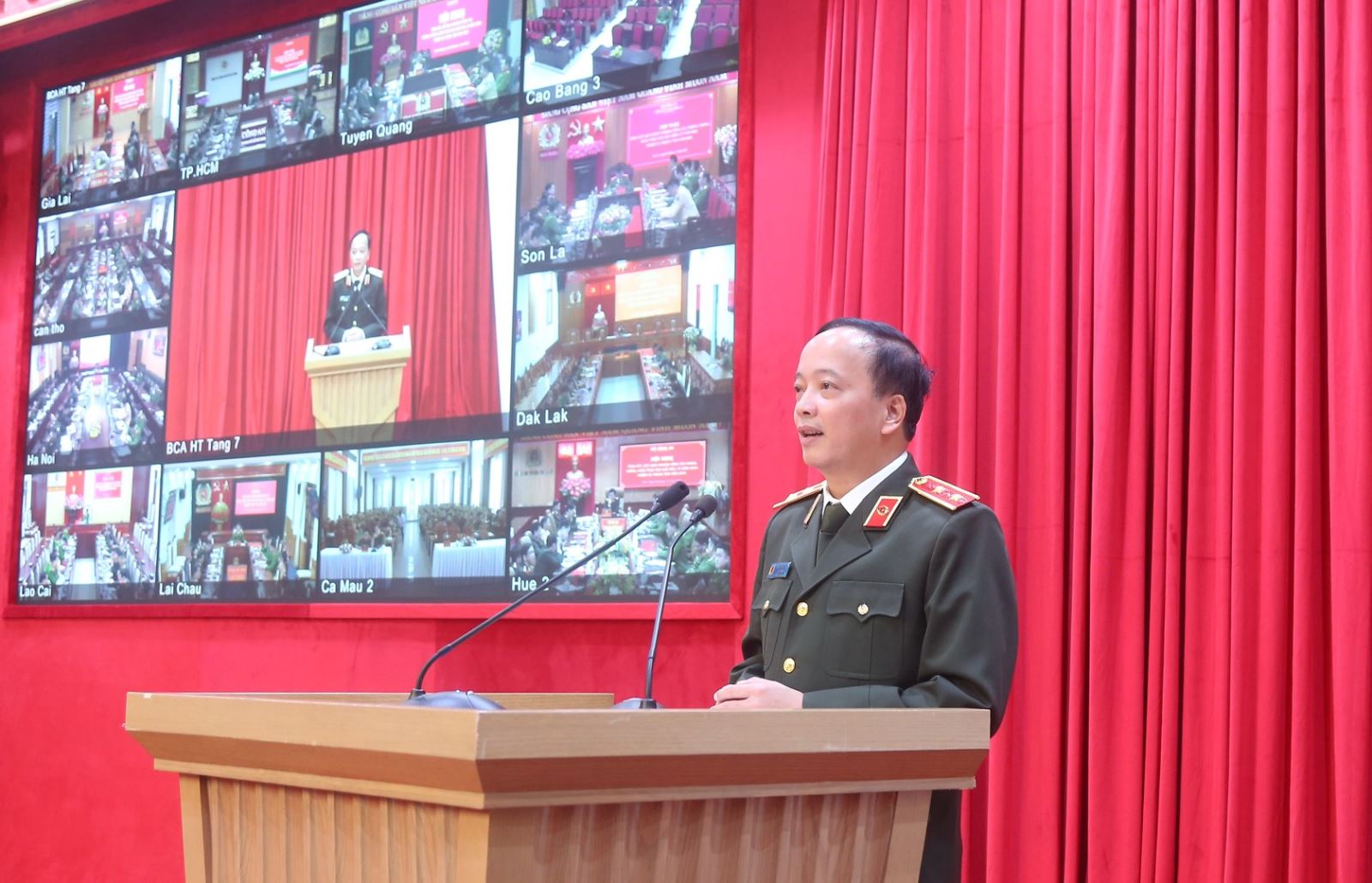 Đồng chí Đại tá Vũ Mạnh Hà, Phó Giám đốc Công an tỉnh chủ trì Hội nghị tại điểm cầu Công an tỉnh