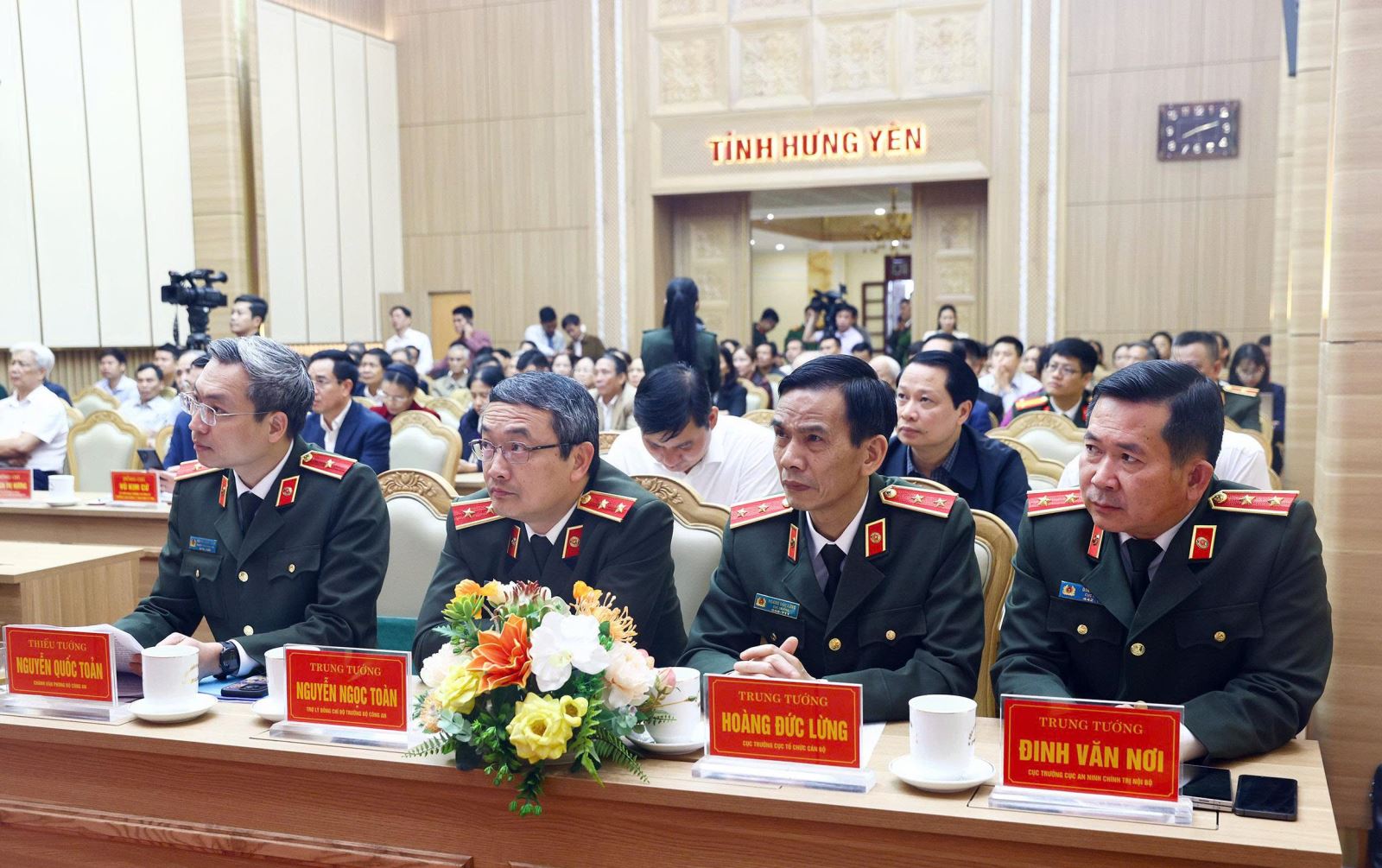 Dự hội nghị, về phía Bộ Công an có đồng chí Thượng tướng Phạm Thế Tùng, Ủy viên Trung ương Đảng, Thứ trưởng Bộ Công an; đại diện lãnh đạo các đơn vị trực thuộc Bộ Công an. Về phía tỉnh Hưng Yên có các đồng chí Phạm Quang Ngọc, Ủy viên Trung ương Đảng, Phó Bí thư Tỉnh ủy, Chủ tịch UBND tỉnh; Trần Quốc Toản, Phó Bí thư Thường trực Tỉnh ủy, Chủ tịch Ủy ban MTTQ Việt Nam tỉnh; Trần Quốc Văn, Phó Bí thư Tỉnh ủy, Chủ tịch HĐND tỉnh; Ngô Thị Kim Hoàn - Ủy viên Ban Thường vụ Tỉnh ủy, Phó Chủ tịch Thường trực Ủy ban MTTQ Việt Nam tỉnh; các đồng chí Ủy viên Ban Thường vụ Tỉnh ủy, Thường trực HĐND, lãnh đạo UBND, lãnh đạo đoàn đại biểu Quốc hội tỉnh; các đồng chí trong Ban Chỉ đạo bầu cử tỉnh, Ủy ban Bầu cử tỉnh, Ban Thường trực Ủy ban MTTQ tỉnh, lãnh đạo các sở, ban, ngành tỉnh; đại diện cử tri các phường Phố Hiến, Sơn Nam… Về phía Công an tỉnh có đồng chí Thiếu tướng Trần Xuân Ánh - Ủy viên Ban Thường vụ Tỉnh ủy, Giám đốc Công an tỉnh; các đồng chí Phó Giám đốc Công an tỉnh; đại diện lãnh đạo một số phòng chức năng…