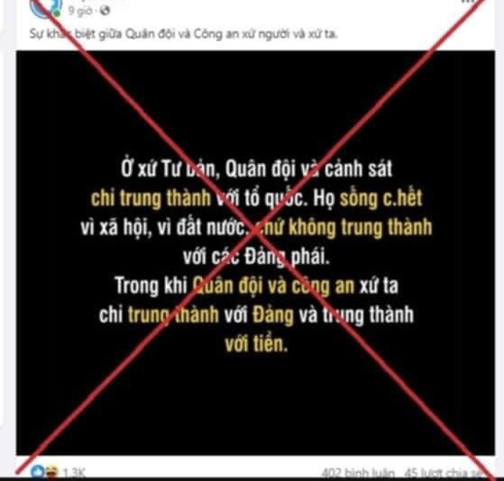 Ảnh bài đăng có luận điệu kích động, chống phá, dễ gây lệch lạc, thiếu niềm tin cho người đọc