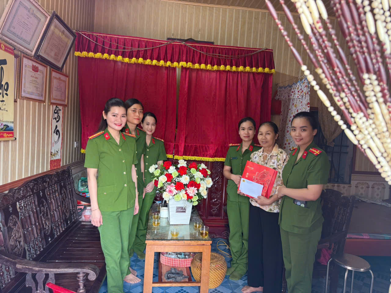 Chi hội phụ nữ Công an xã Vũ Thư đến thăm, tặng quà đồng chí Khiếu Thị Phúc, nguyên Chủ tịch Hội LHPN xã Tam Quang, huyện Vũ Thư (cũ)