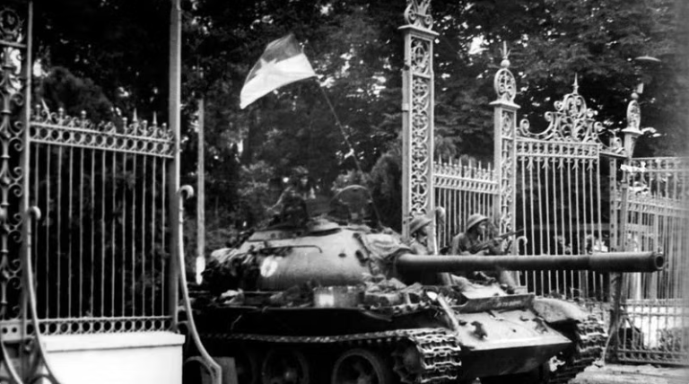 11 giờ 30 phút ngày 30/4/1975, xe tăng quân Giải phóng băng qua cánh cổng sắt, đánh chiếm Phủ Tổng thống ngụy Sài Gòn, sào huyệt cuối cùng của quân địch, kết thúc oanh liệt cuộc trường chinh 30 năm chống ngoại xâm của dân tộc.