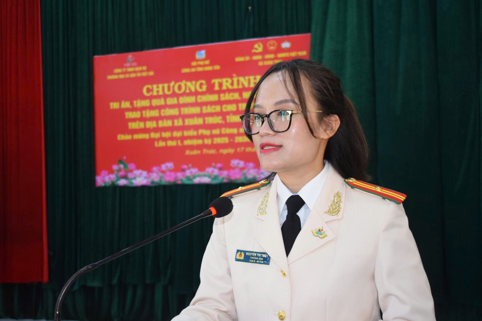 Đồng chí Thiếu tá Nguyễn Thị Thủy – Trưởng ban Phụ nữ Công an tỉnh phát biểu tại Chương trình