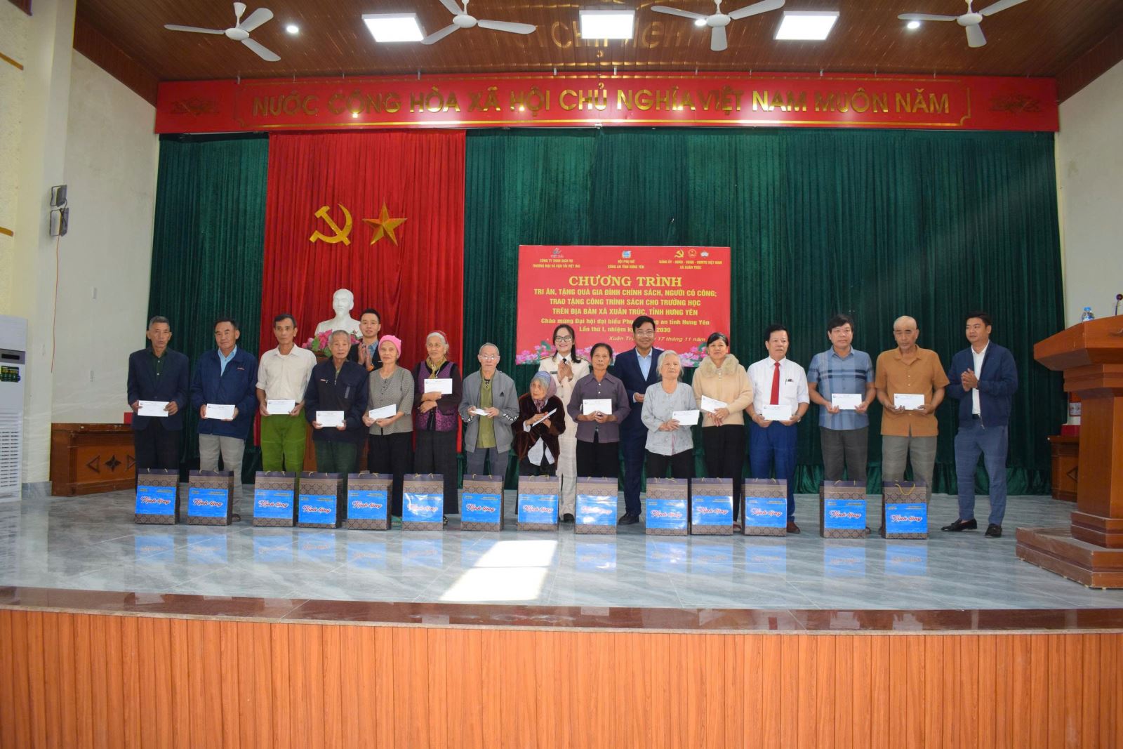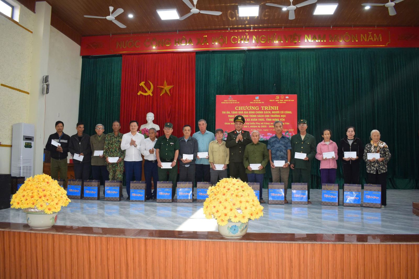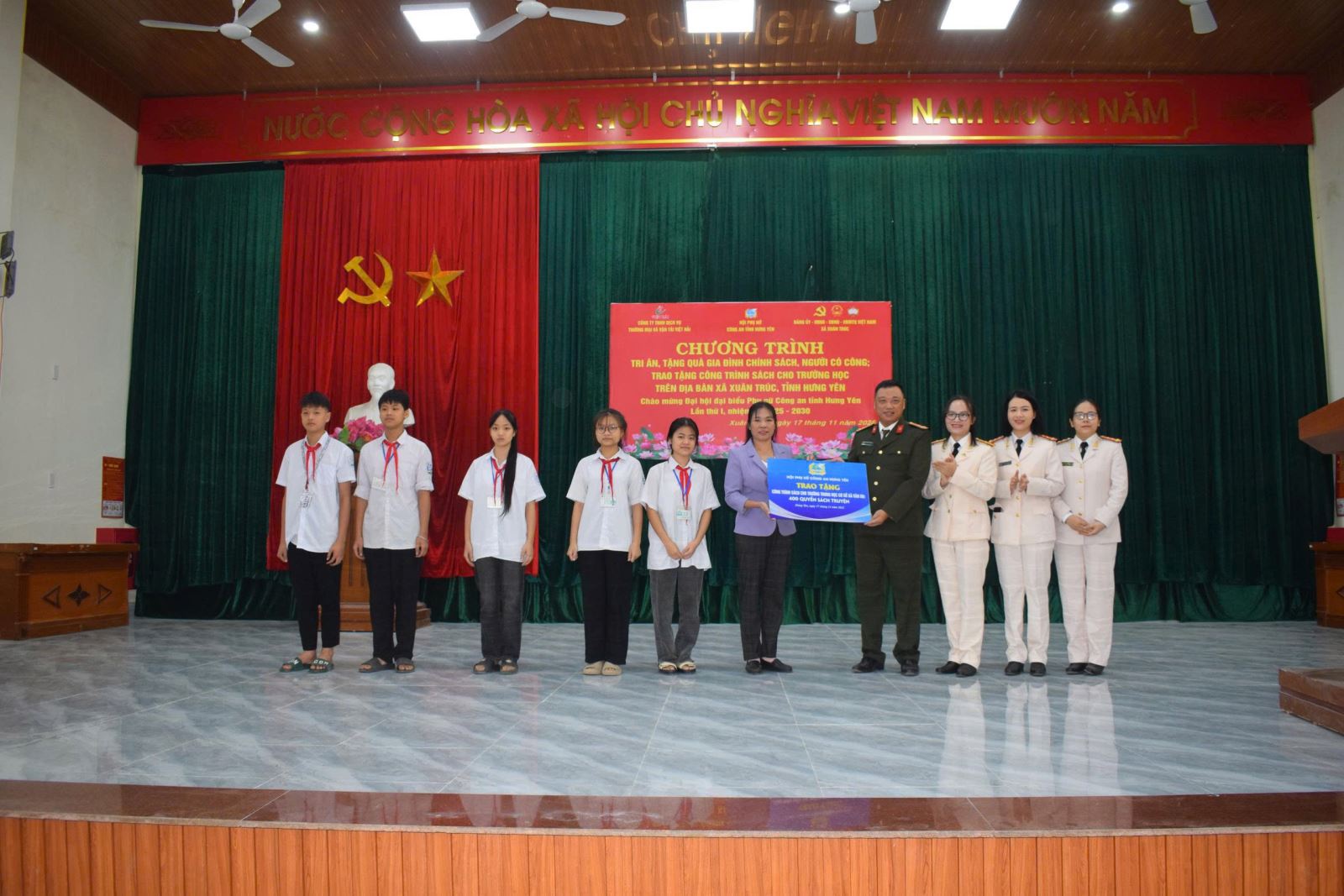 Tiếp ngay sau đó, Đoàn đại biểu phối hợp với Công ty TNHH thương mại dịch vụ và vận tải Việt Hải tổ chức chương trình tri ân, tặng 50 suất quà cho gia đình chính sách, người có công, mỗi suất trị giá 800.000đ và trao tặng 02 công trình sách cho Trường Tiểu học và THCS Vân Du với tổng kinh phí 100 triệu đồng. Mỗi món quà, mỗi suất hỗ trợ đều là tấm lòng của cán bộ, hội viên phụ nữ Công an tỉnh gửi gắm sự sẻ chia chân thành, tri ân sâu sắc đến những mất mát, hy sinh của các gia đình chính sách, người có công còn mang nặng nỗi đau chiến tranh.