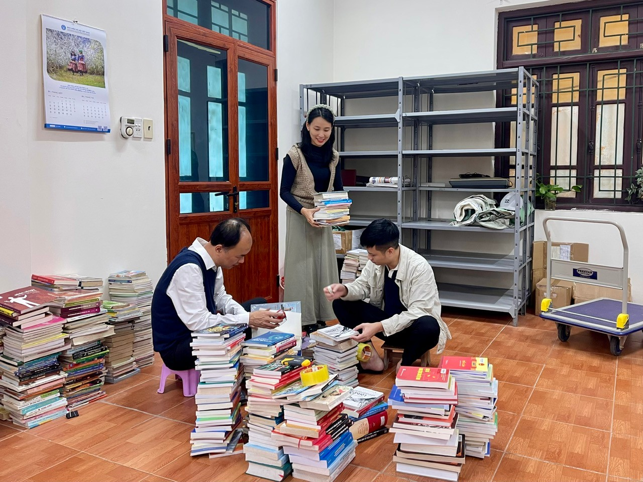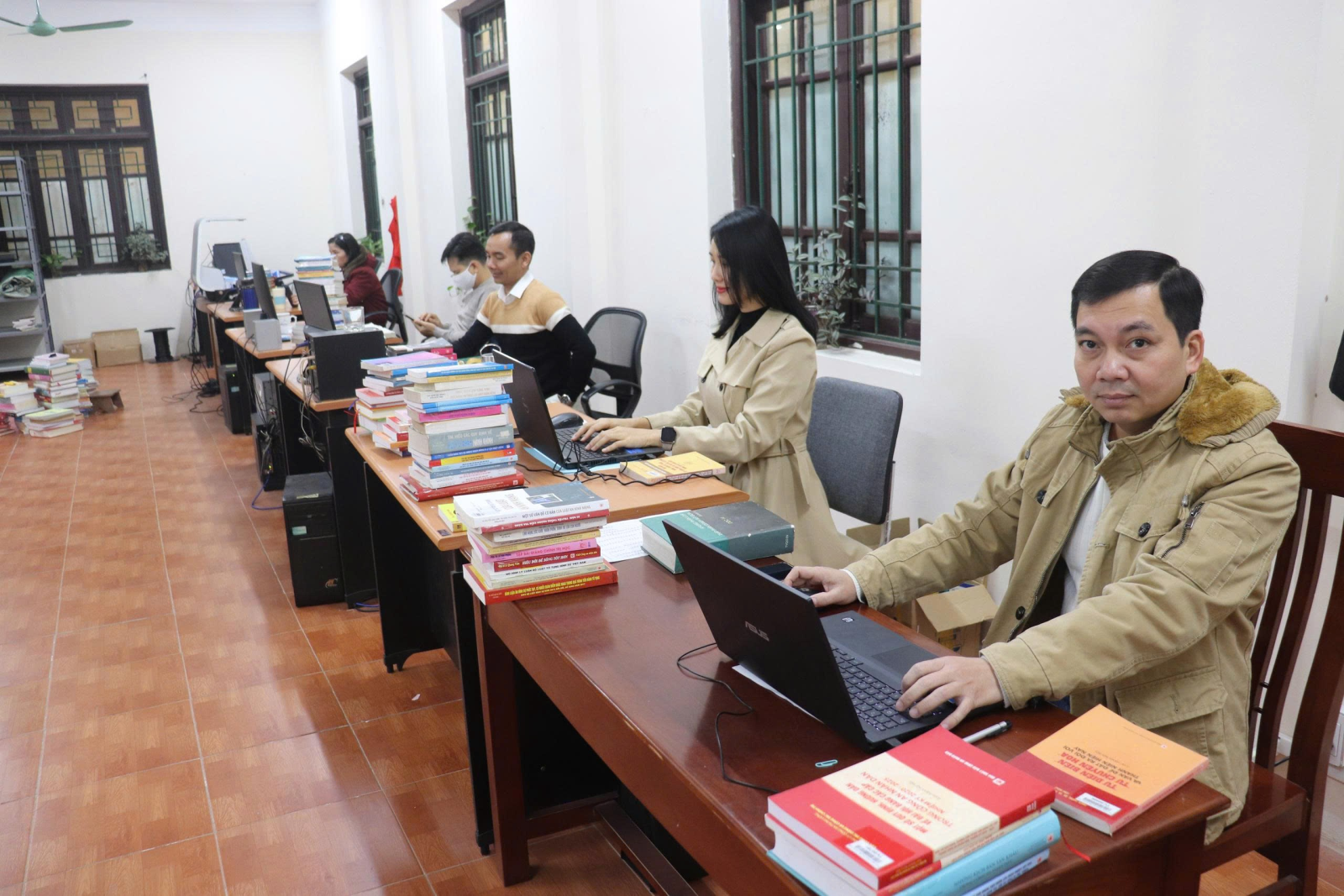 Cán bộ quản lý thư viện Công an tỉnh phối hợp với cán bộ thư viện tỉnh