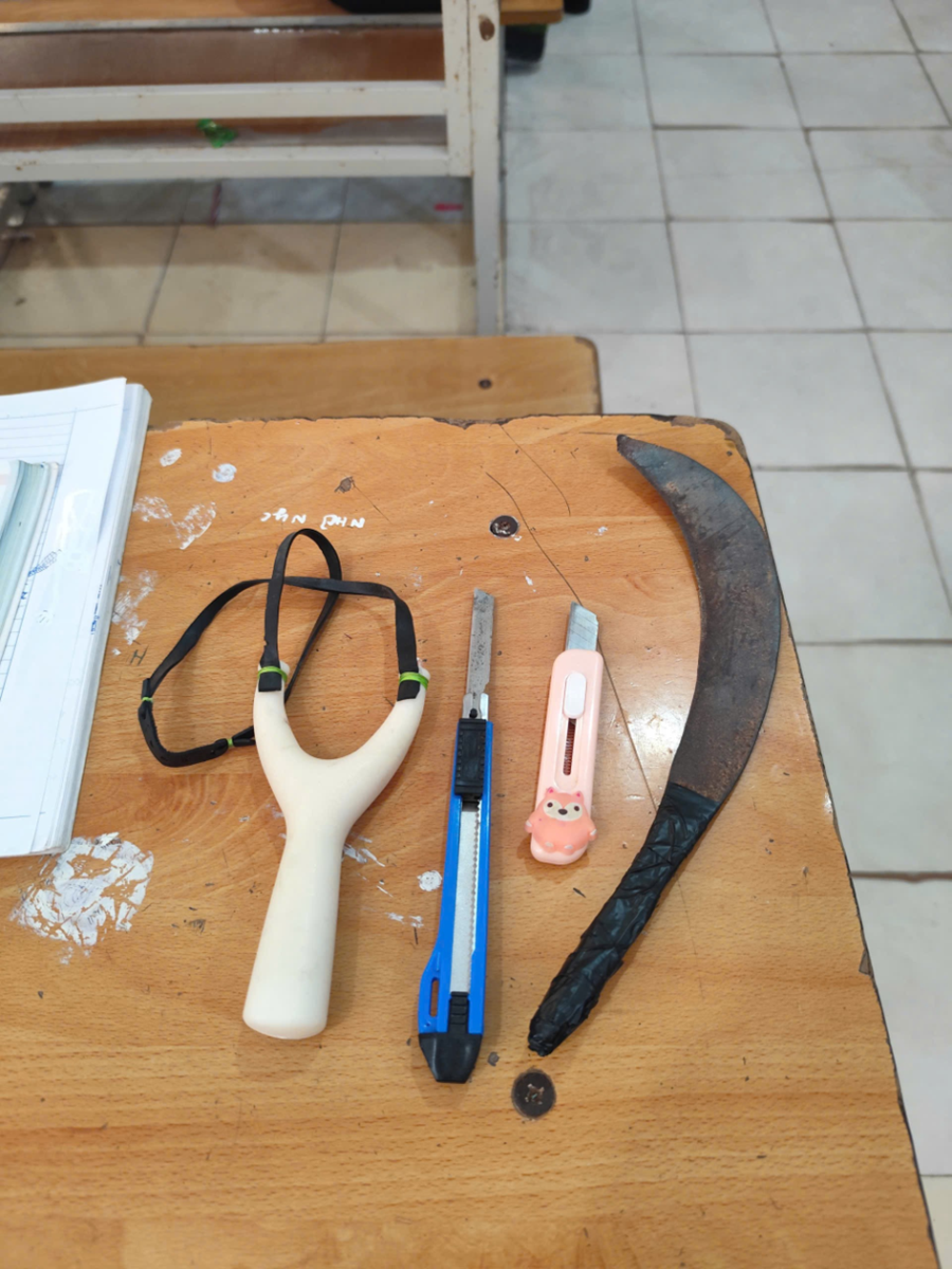 Công an xã Nam Thái Ninh phối hợp kiểm tra vũ khí, vật dụng nguy hiểm tại các trường học trên địa bàn xã