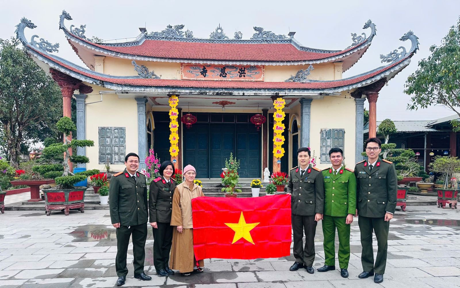 Công an xã Bình Nguyên tặng cờ Tổ quốc cho các cơ sở tôn giáo trên địa bàn
