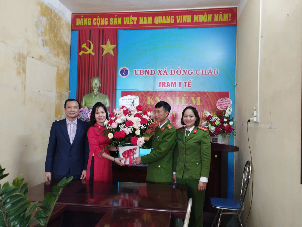 Công an xã Đồng Châu thăm, tặng hoa nhân Ngày Thầy thuốc Việt Nam 27/02 tại Trạm y tế xã Đồng Châu