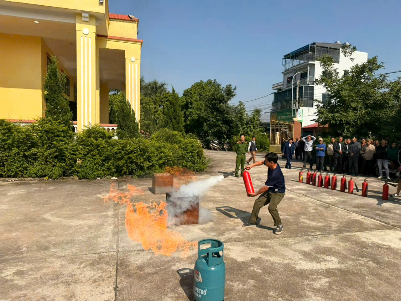 Đội Chữa cháy và CNCH khu vực Quỳnh Phụ tổ chức huấn luyện nghiệp vụ phòng cháy, chữa cháy, cứu nạn, cứu hộ cho thành viên 18 đội dân phòng trên địa bàn xã Nguyễn Du