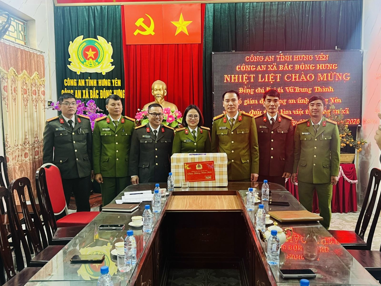 Đồng chí Đại tá Vũ Trung Thành - Phó Giám đốc Công an tỉnh đến thăm, làm việc và chúc tết Đảng ủy, HĐND, UBND và Công an xã Bắc Đông Hưng
