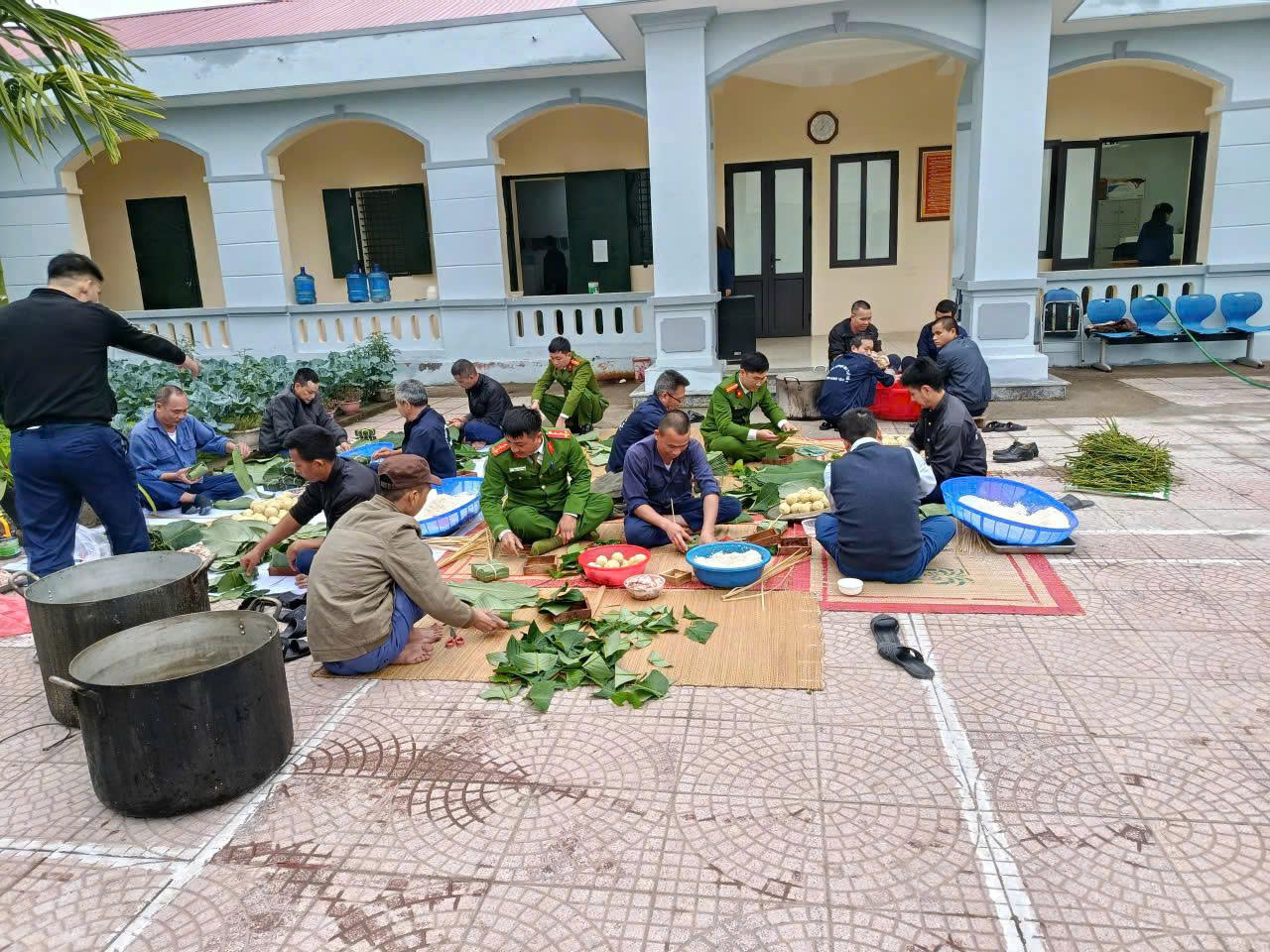 Điểm nhấn đặc biệt của chương trình là hoạt động gói bánh chưng – nét đẹp truyền thống của dân tộc mỗi dịp Tết cổ truyền. Dưới sự hướng dẫn của cán bộ, các học viên cùng nhau chuẩn bị lá dong, gạo nếp, đậu xanh, thịt lợn và tỉ mỉ gói từng chiếc bánh. Mỗi chiếc bánh chưng không chỉ là món quà vật chất mà còn chứa đựng tình cảm, sự biết ơn và lời hứa quyết tâm làm lại cuộc đời gửi tới gia đình. Đối với nhiều học viên, đây là lần đầu tiên sau thời gian dài họ có thể tự tay chuẩn bị món quà Tết ý nghĩa dành tặng cha mẹ, vợ con.