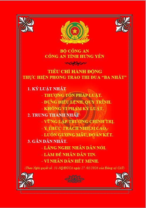 Thực hiện Nghị quyết Đại hội Đảng bộ Công an Trung ương lần thứ VIII nhiệm kỳ 2025 - 2030 và chỉ đạo của đồng chí Tô Lâm, Tổng Bí thư Ban Chấp hành Trung ương Đảng Cộng sản Việt Nam tại Đại hội, đồng chí Bộ trưởng Bộ Công an phát động và ban hành kế hoạch tổ chức phong trào thi đua “Ba nhất: Kỷ luật nhất - Trung thành nhất - Gần dân nhất” trong Công an nhân dân. Phong trào thi đua “Ba nhất” vừa là hoạt động thi đua, vừa là phương thức lãnh đạo của Đảng trong Công an nhân dân (CAND), tạo động lực chính trị mạnh mẽ quyết tâm thực hiện thắng lợi Nghị quyết Đại hội Đảng bộ Công an Trung ương lần thứ VIII, Nghị quyết Đại hội Đảng toàn quốc lần thứ XIV, nhằm xây dựng đội ngũ cán bộ “Trung với Đảng, hiếu với dân, vì nước quên thân, vì dân phục vụ”, là phương thức để giáo dục, nâng cao bản lĩnh chính trị, ý chí chiến đấu, lòng trung thành, ý thức tổ chức kỷ luật, củng cố mối quan hệ “máu thịt” với nhân dân, đây là nghĩa vụ thiêng liêng, là danh dự cao quý của người chiến sĩ CAND; phong trào thi đua “ Ba nhất” là trụ cột, linh hồn, động lực nâng cao chất lượng phong trào thi đua “Vì an ninh Tổ quốc” và phong trào toàn dân bảo vệ an ninh Tổ quốc.