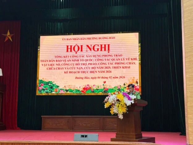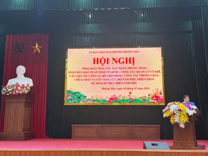 Phát biểu chỉ đạo tại hội nghị, đồng chí Bùi Mạnh Hùng – Bí thư Đảng bộ phường; ghi nhận, biểu dương những kết quả đạt được của Công an phường Đường Hào và UBND phường trong công tác bảo đảm an ninh trật tự thời gian qua; đồng thời đề nghị trong năm 2026, địa phương tiếp tục phát huy vai trò nòng cốt của lực lượng Công an cơ sở, đẩy mạnh phong trào Toàn dân bảo vệ an ninh Tổ quốc, tăng cường công tác quản lý Nhà nước về ANTT, nhất là trong lĩnh vực quản lý vũ khí, vật liệu nổ, pháo và công tác PCCC, góp phần giữ vững ổn định an ninh chính trị, trật tự an toàn xã hội trên địa bàn.