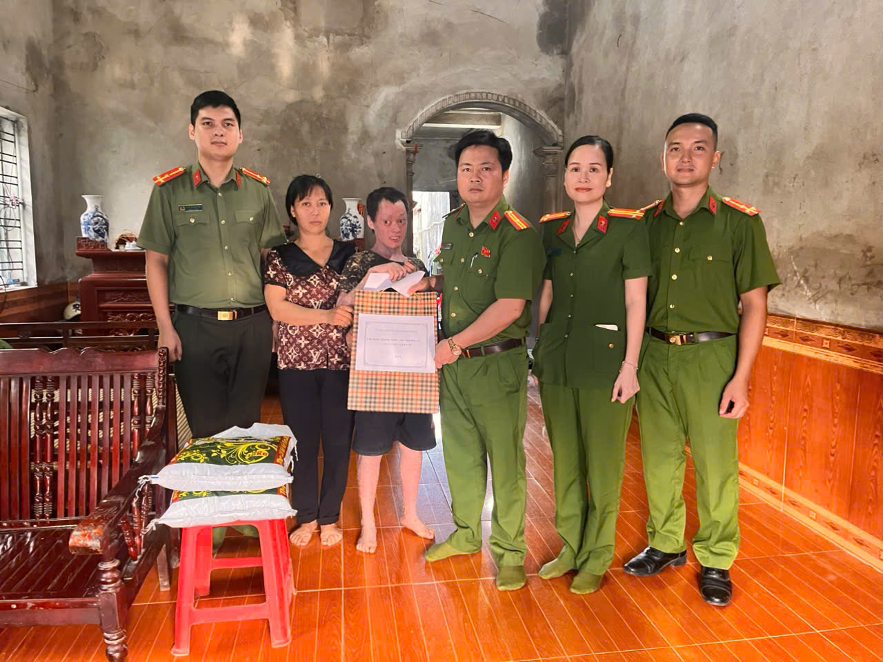 Lãnh đạo Công an phường và các nhà hảo tâm thăm tặng quà gia đình có 2 cháu bị mắc chứng bệnh bại não