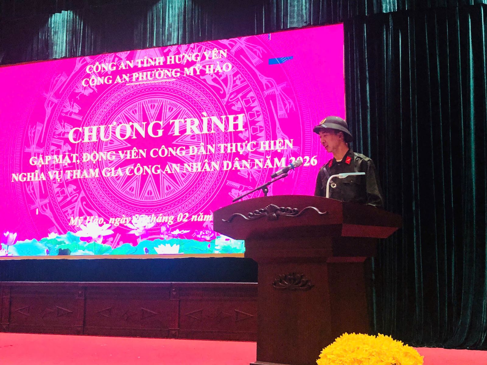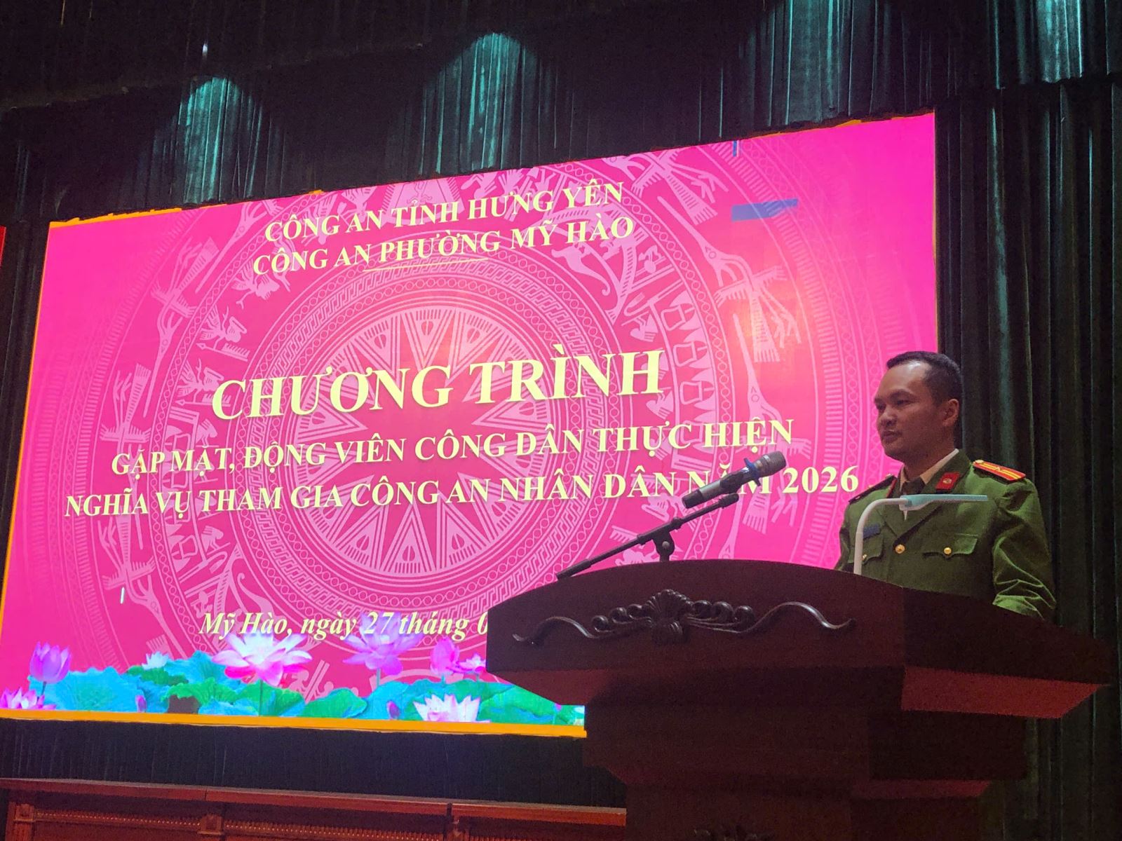 Chiều ngày 27/02/2026, Công an phường Mỹ Hào tổ chức Hội nghị gặp mặt, động viên và tặng quà công dân thực hiện nghĩa vụ tham gia Công an nhân dân. Dự, chỉ đạo hội nghị có đồng chí Thiếu tá Nguyễn Văn Hiên - Phó Trưởng Công an phường, đại diện các Tổ Công tác và 06 công dân thực hiện nghĩa vụ tham gia Công an nhân dân năm 2026.