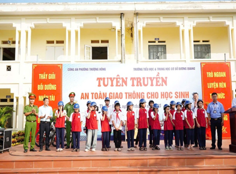 Lực lượng Công an tổ chức tuyên tuyền về ATGT và tặng quà cho học sinh nghèo vượt khó