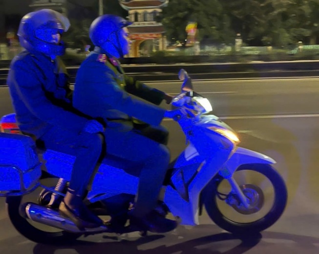 Công an phường tuần tra kiểm soát trên địa bàn và các khu vực bỏ phiếu