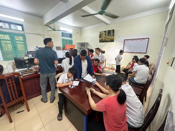 Phụ huynh, học sinh chờ thực hiện thủ tục tại Công an phường