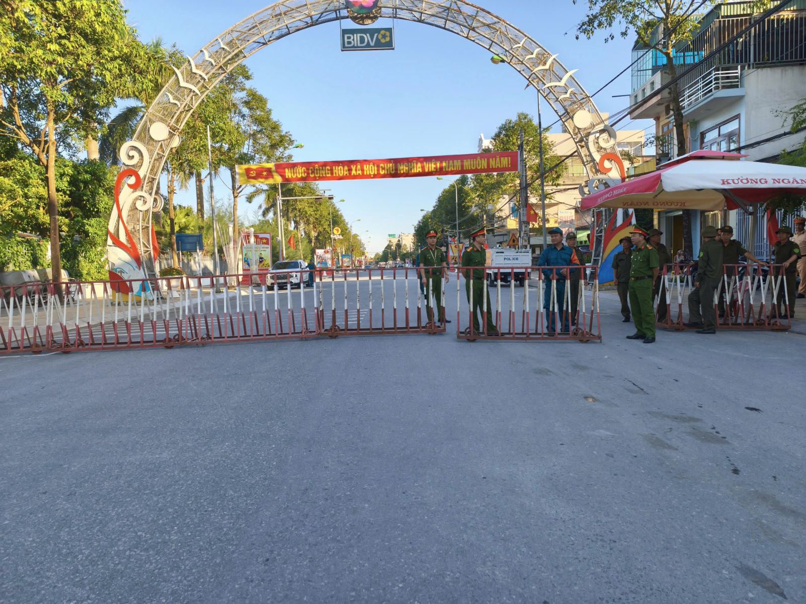 Tổ công tác chốt tại ngã tư Nguyễn Đức Cảnh, Long Hưng để phân luồng giao thông, kiểm soát ra vào khu vực tổ chức Đại hội