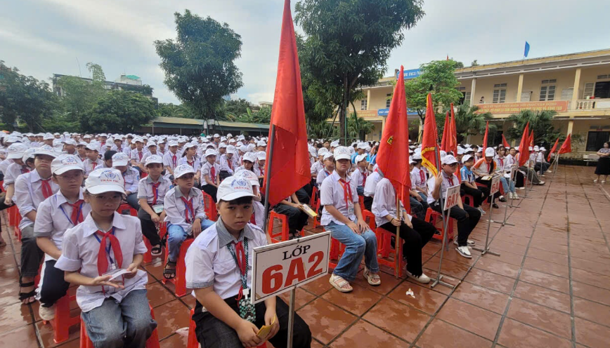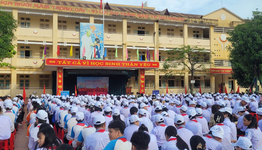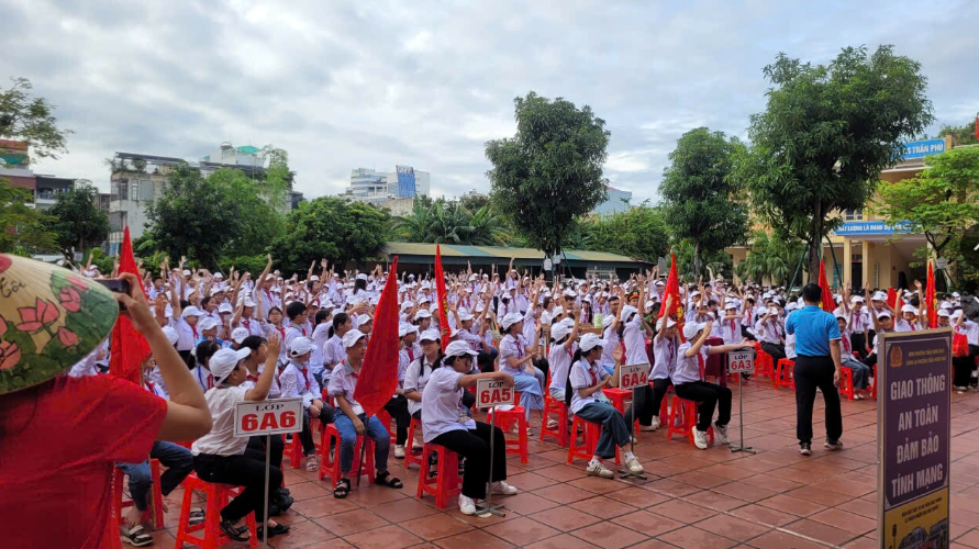 Học sinh trường THCS Trần Phú tại buổi tuyên truyền