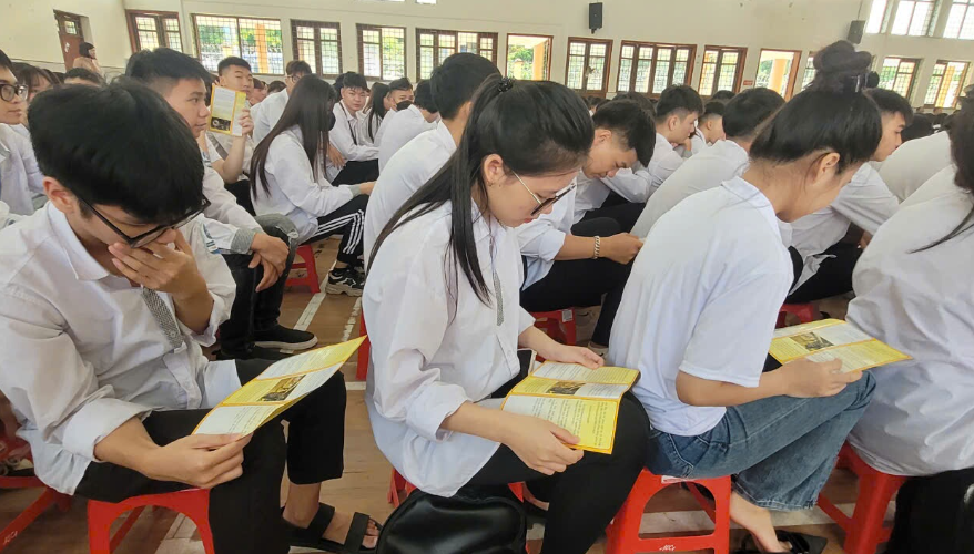 Học sinh trường THPT Lê Quý Đôn tại buổi tuyên truyền