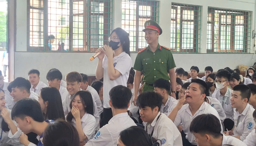 Tại Trường THPT Lê Quý Đôn và trường Trường Cao đẳng Sư phạm Thái Bình, chương trình được thiết kế phù hợp với tâm lý lứa tuổi thanh niên – có nhận thức xã hội phát triển nhưng còn thiếu kinh nghiệm sống, dễ bị lôi kéo, dụ dỗ. Nội dung tuyên truyền tập trung vào việc nâng cao ý thức chấp hành pháp luật, nhất là trong lĩnh vực an toàn giao thông và an ninh mạng. Cán bộ công an phường đã cảnh báo những thủ đoạn lừa đảo, bắt cóc qua mạng xã hội; hướng dẫn học sinh cách nhận diện, phòng tránh và báo tin kịp thời khi gặp tình huống đáng ngờ. Đồng thời, trao đổi, đối thoại về trách nhiệm pháp lý và đạo đức của công dân trong kỷ nguyên số, ý thức tuân thủ pháp luật khi tham gia các hoạt động xã hội, cũng như kỹ năng tự bảo vệ bản thân trước những nguy cơ tiềm ẩn từ mạng internet và đời sống thực tế.
