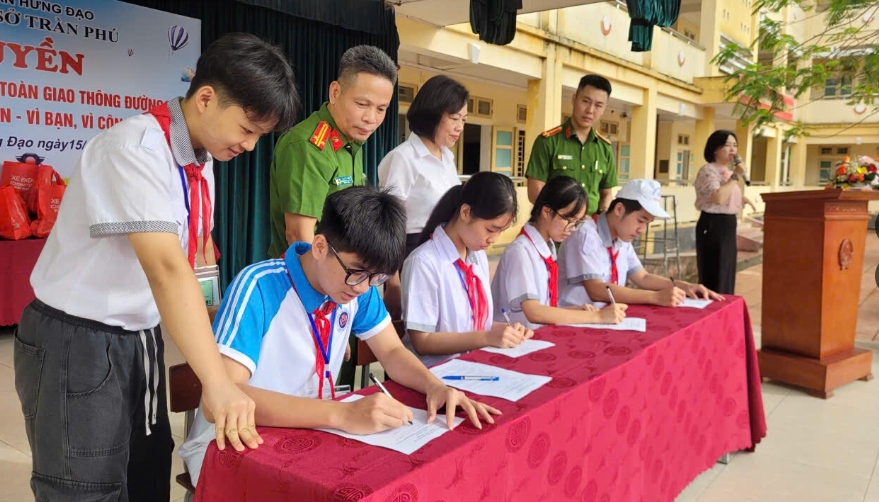 Học sinh ký cam kết thực hiện các quy định về đảm bảo an ninh trật tự