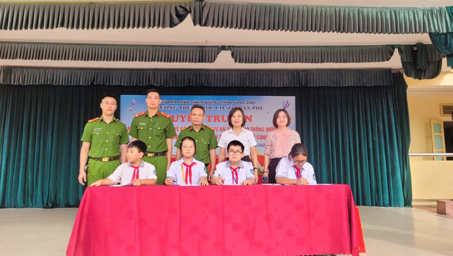 Tại các nhà trường, nội dung trọng tâm đầu tiên được Công an phường Trần Hưng Đạo tuyên truyền là bảo đảm trật tự, an toàn giao thông – một chủ đề gần gũi, thiết thực với các lứa tuổi học sinh. Cán bộ công an đã thông tin khái quát về tình hình tai nạn giao thông trên địa bàn tỉnh và tại địa phương, phân tích những nguyên nhân phổ biến dẫn đến va chạm, tai nạn khi tham gia giao thông cũng như các lỗi mà học sinh hay mắc phải. Từ đó, hướng dẫn các em những kỹ năng cơ bản, phù hợp với độ tuổi, cấp học như: đi bộ đúng phần đường, đội mũ bảo hiểm khi ngồi trên xe mô tô, xe gắn máy, tuân thủ tín hiệu đèn giao thông, không đùa nghịch hoặc sử dụng điện thoại khi đang lái xe. Bên cạnh việc giới thiệu các quy tắc giao thông và cách xử lý tình huống thường gặp, cán bộ tuyên truyền cũng nhấn mạnh vai trò của mỗi học sinh trong việc xây dựng văn hóa giao thông an toàn, văn minh, góp phần giảm thiểu tai nạn và giữ gìn trật tự an toàn xã hội.