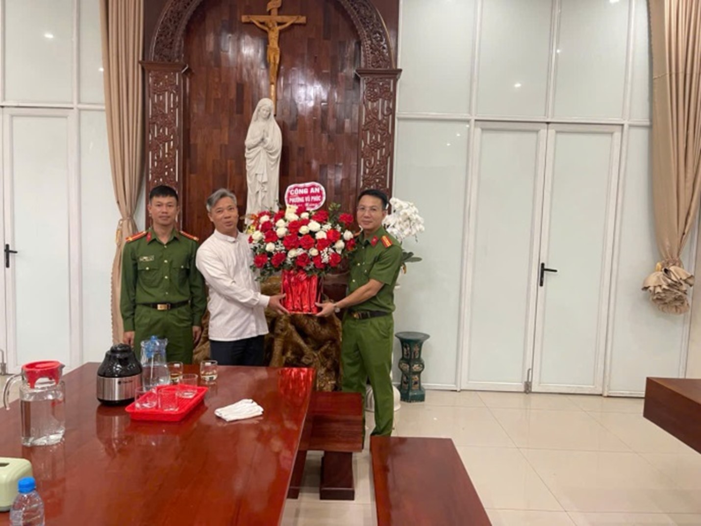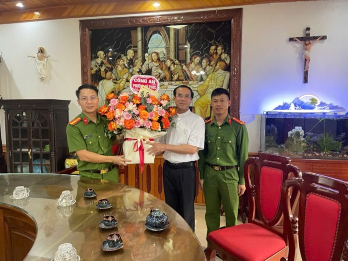 Công an phường Vũ Phúc thăm, chúc mừng giáo xứ An Lạc và giáo xứ Hoàng Xá