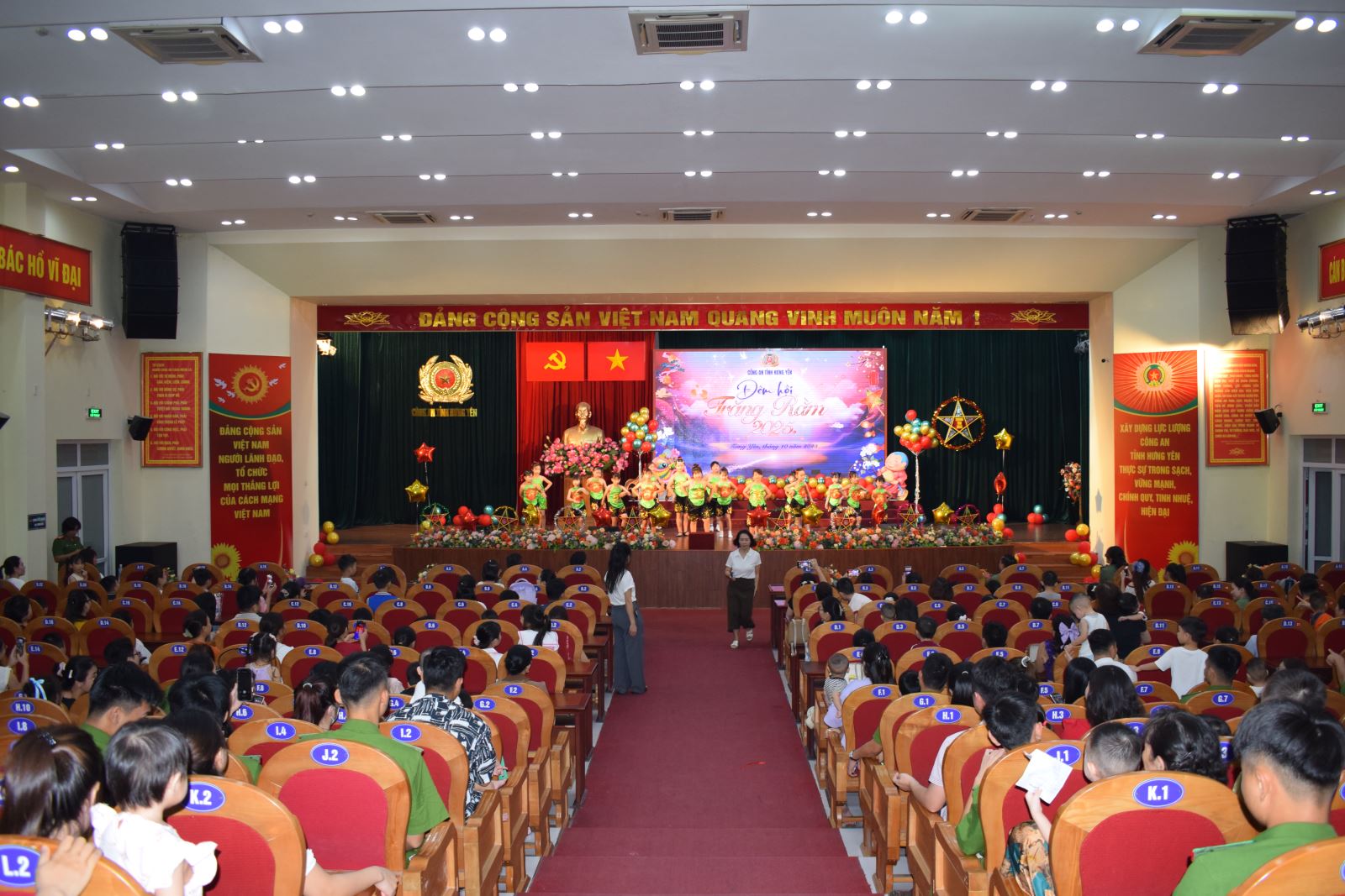 Tối ngày 02/10/2025, tại Hội trường trung tâm Công an tỉnh (cơ sở 1), Công an tỉnh Hưng Yên đã tổ chức chương trình “Đêm hội trăng rằm” cho các cháu thiếu nhi là con cán bộ, chiến sĩ, công nhân viên trong đơn vị. Tham dự chương trình có đồng chí Thượng tá Trần Văn Kiên – Trưởng phòng Công tác chính trị; đại diện lãnh đạo các đơn vị, Ban Thanh niên, Ban Phụ nữ, các chi đoàn, hội phụ nữ cơ sở cùng đông đảo các cháu thiếu nhi.