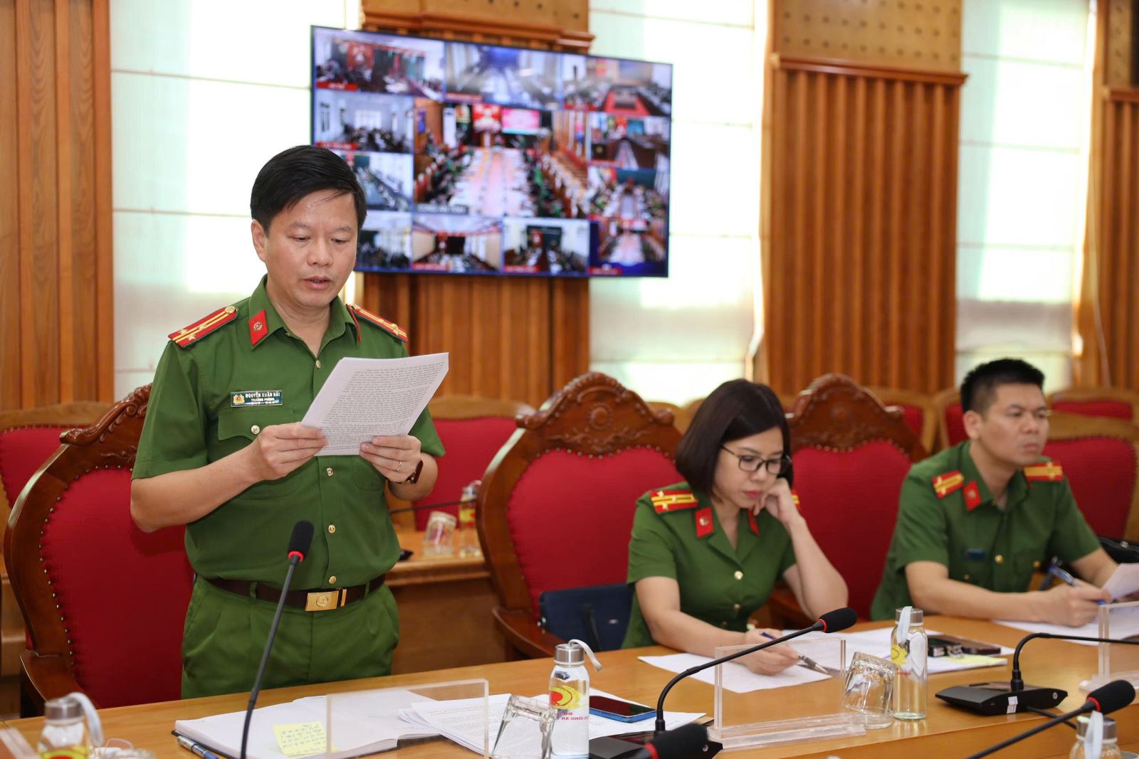 Đồng chí Thượng tá Nguyễn Xuân Hải, Trưởng phòng Cảnh sát quản lý hành chính về trật tự xã hội báo cáo kết quả 01 tháng triển khai kế hoạch cao điểm