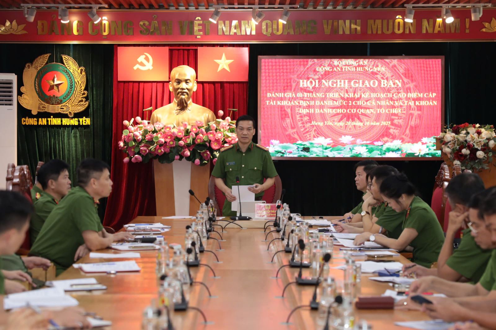 Chiều ngày 20/10/2025, Công an tỉnh Hưng Yên tổ chức Hội nghị giao ban đánh giá 01 tháng triển khai kế hoạch cao điểm cấp tài khoản định danh mức 2 cho cá nhân và tài khoản định danh cho cơ quan, tổ chức với hình thức trực tiếp kết hợp trực tuyến đến Công an cấp xã. Đồng chí Thượng tá Nguyễn Thái Hợp, Phó Giám đốc Công an tỉnh chủ trì Hội nghị.