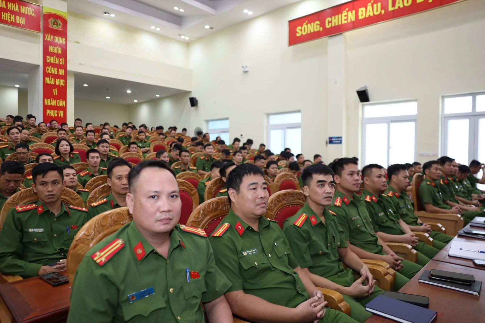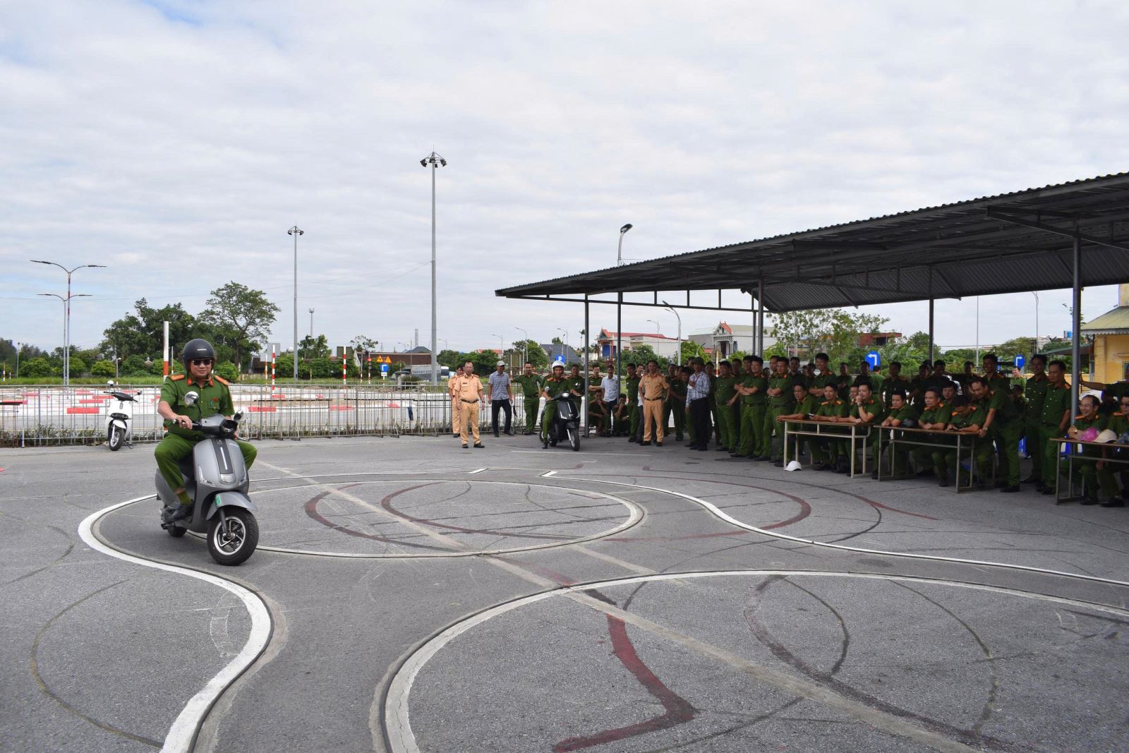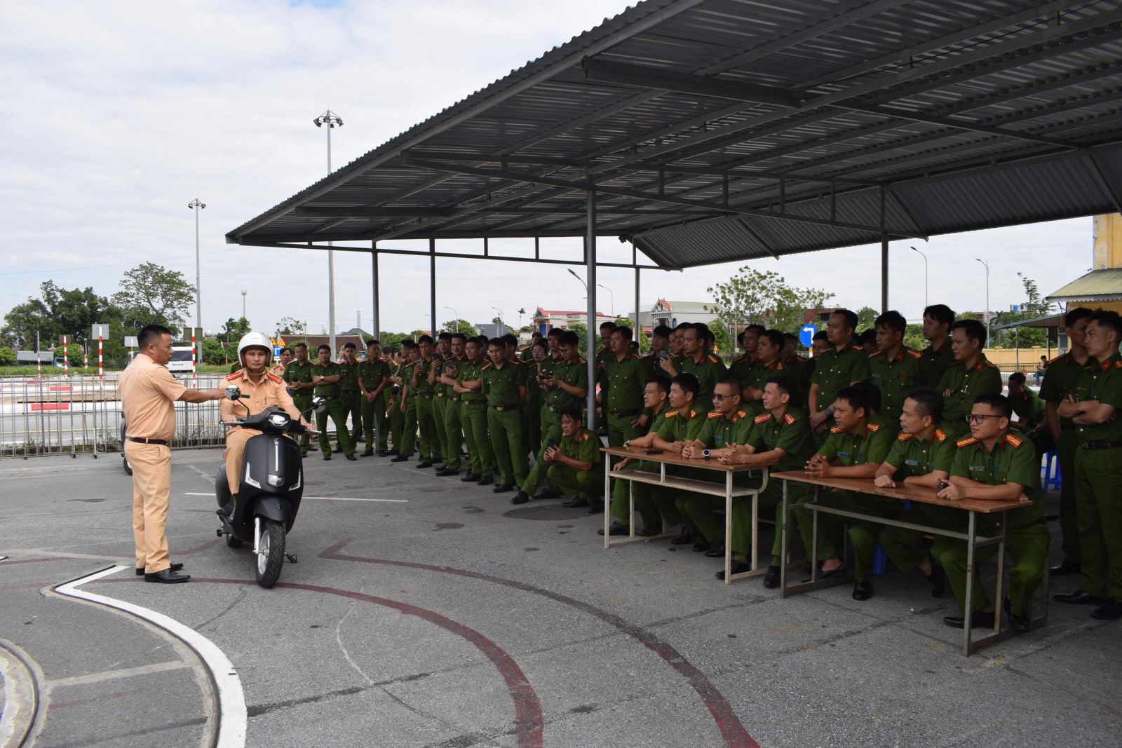 Học viên tham gia lớp tập huấn là đại diện chỉ huy, cán bộ chiến sĩ phụ trách công tác tuyên truyền thuộc phòng Cảnh sát giao thông Công an tỉnh và Công an các xã, phường trên địa bàn tỉnh. Nội dung tập huấn gồm 2 phần, phần lý thuyết: Quán triệt, triển khai một số văn bản về công tác phối hợp giữa lực lượng Cảnh sát giao thông và Công an cấp xã; Thông tin về tình hình trật tự an toàn giao thông trong lứa tuổi học sinh THPT và cơ sở Giáo dục nghề nghiệp hiện nay, nguyên nhân và giải pháp xử lý vi phạm về giao thông của nhóm đối tượng này; Phổ biến kiến thức cơ bản về Luật trật tự, an toàn giao thông đường bộ; quy tắc điều khiển xe gắn máy; Kỹ năng tuyên truyền, giáo dục và hướng dẫn học sinh trong hoạt động ngoại khóa về an toàn giao thông. Phần thực hành: Thực hành kỹ năng lái xe an toàn trên sa hình; Hướng dẫn cách tổ chức, điều hành buổi hướng dẫn thực hành cho học sinh THPT và cơ sở Giáo dục nghề nghiệp; Xử lý tình huống thực tế khi hướng dẫn hoặc kiểm tra vi phạm liên quan đến lứa tuổi học sinh.