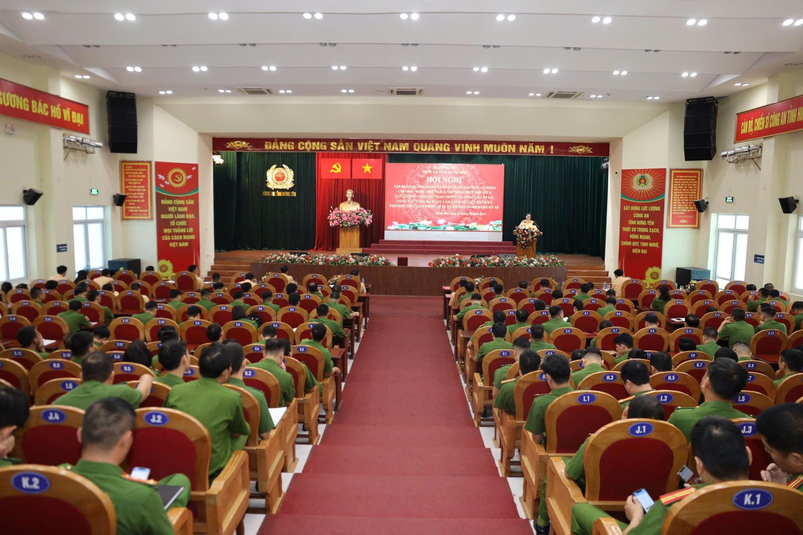 Đồng chí Phó Giám đốc Công an tỉnh phát biểu chỉ đạo tại hội nghị
