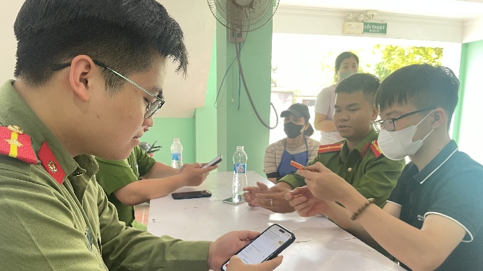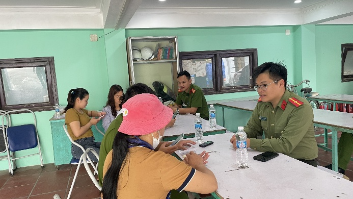 Công an xã Ái Quốc hỗ trợ công nhân tích hợp tài khoản an sinh xã hội