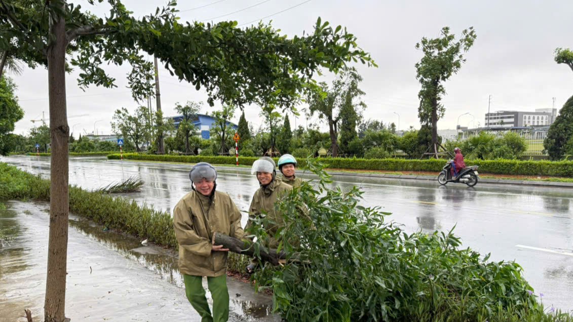Công an xã ứng phó với bão số 9