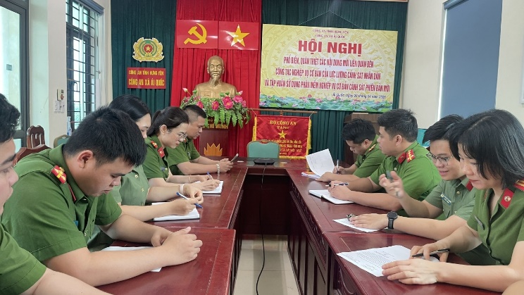Tại hội nghị, toàn thể cán bộ, chiến sĩ Công an xã đã được nghe phổ biến, nghiên cứu kỹ các Thông tư, Quyết định và Hướng dẫn mới nhất của Bộ Công an liên quan đến công tác nghiệp vụ cơ bản của lực lượng Cảnh sát nhân dân. Không chỉ dừng lại ở việc truyền đạt lý thuyết, hội nghị còn là diễn đàn để cán bộ, chiến sĩ trao đổi những vấn đề thực tiễn đang diễn ra tại địa bàn. Chỉ huy Công an xã đã trực tiếp lắng nghe, giải đáp và hướng dẫn tháo gỡ những khó khăn, vướng mắc trong quá trình triển khai công tác nghiệp vụ cơ bản tại cơ sở. Dựa trên các tình huống cụ thể, những kiến nghị của cán bộ, chiến sĩ đã được phân tích chi tiết, từ đó thống nhất phương pháp xử lý bảo đảm tuân thủ đúng quy định hiện hành, đồng thời linh hoạt, phù hợp với đặc điểm tình hình an ninh trật tự thực tế tại địa phương. Điều này giúp kịp thời chấn chỉnh, khắc phục những hạn chế, thống nhất nhận thức và cách làm trong toàn đơn vị.