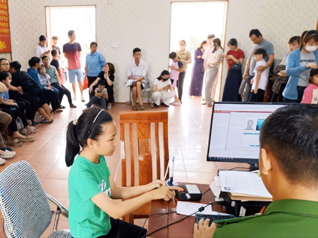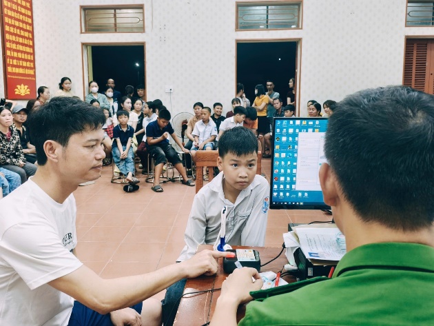 Công an xã thu nhận cấp tài khoản định danh điện tử mức độ 2 cho trẻ từ 6 đến dưới 14 tuổi
