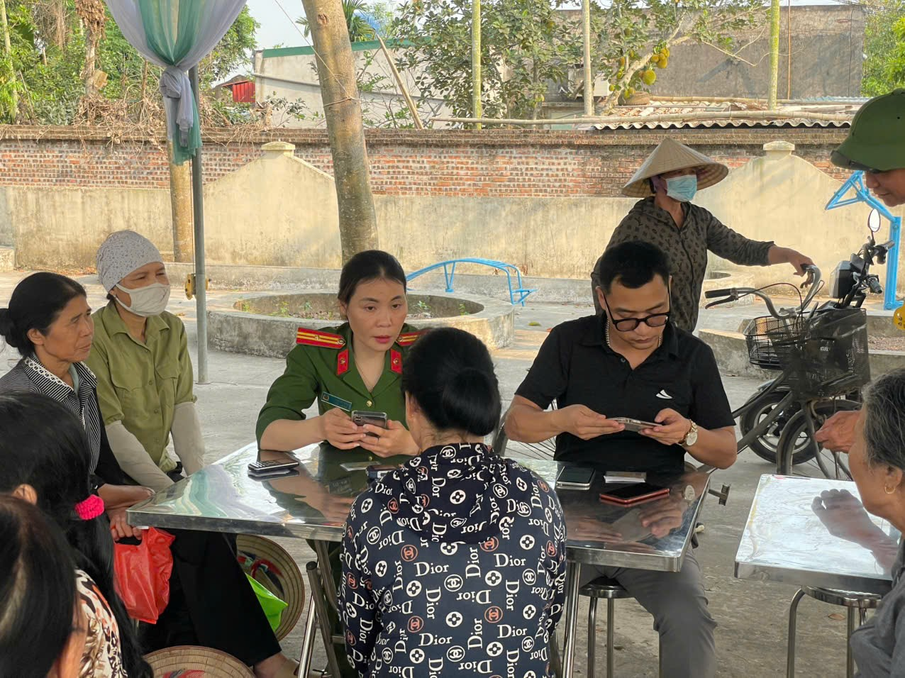 Cán bộ, chiến sĩ Công an xã tích cực hỗ trợ người dân tích hợp tài khoản ASXH