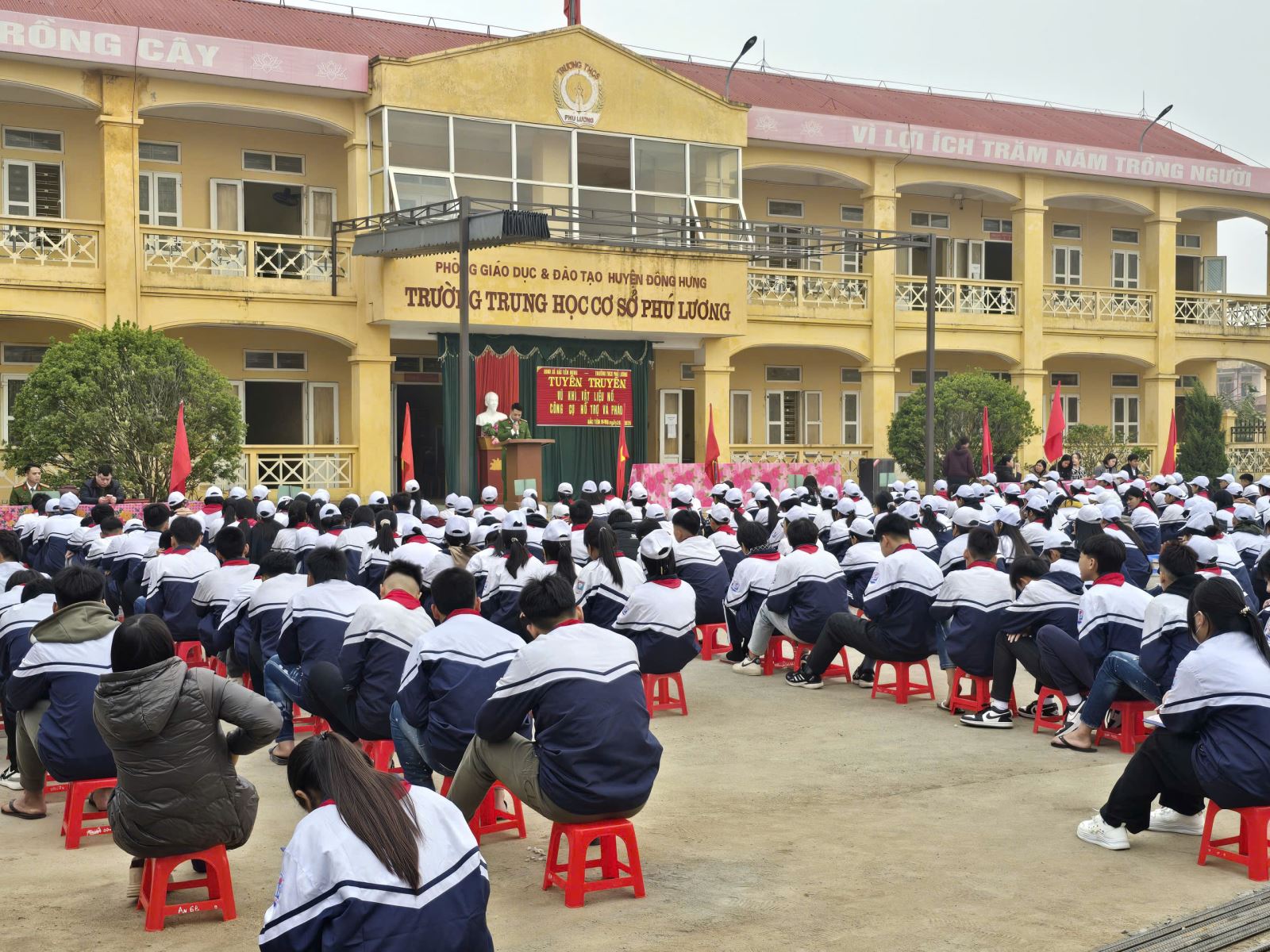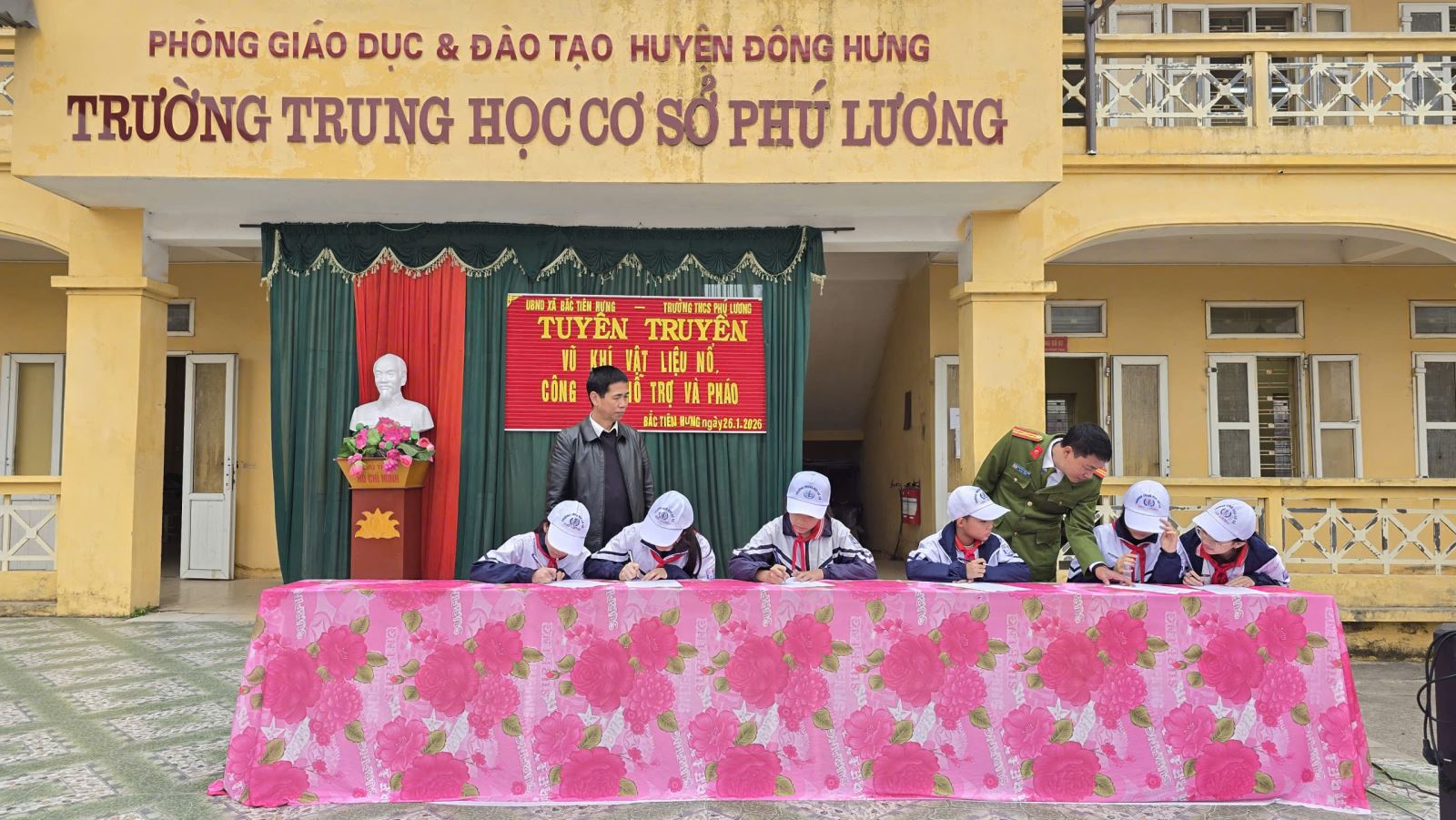 Công an xã Bắc Tiên Hưng tuyên truyền tới toàn thể các em học sinh trường THCS Phú Lương trong sáng ngày 26/01/2026