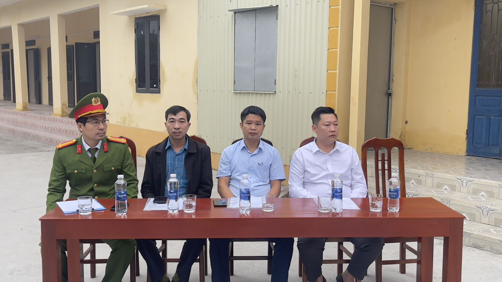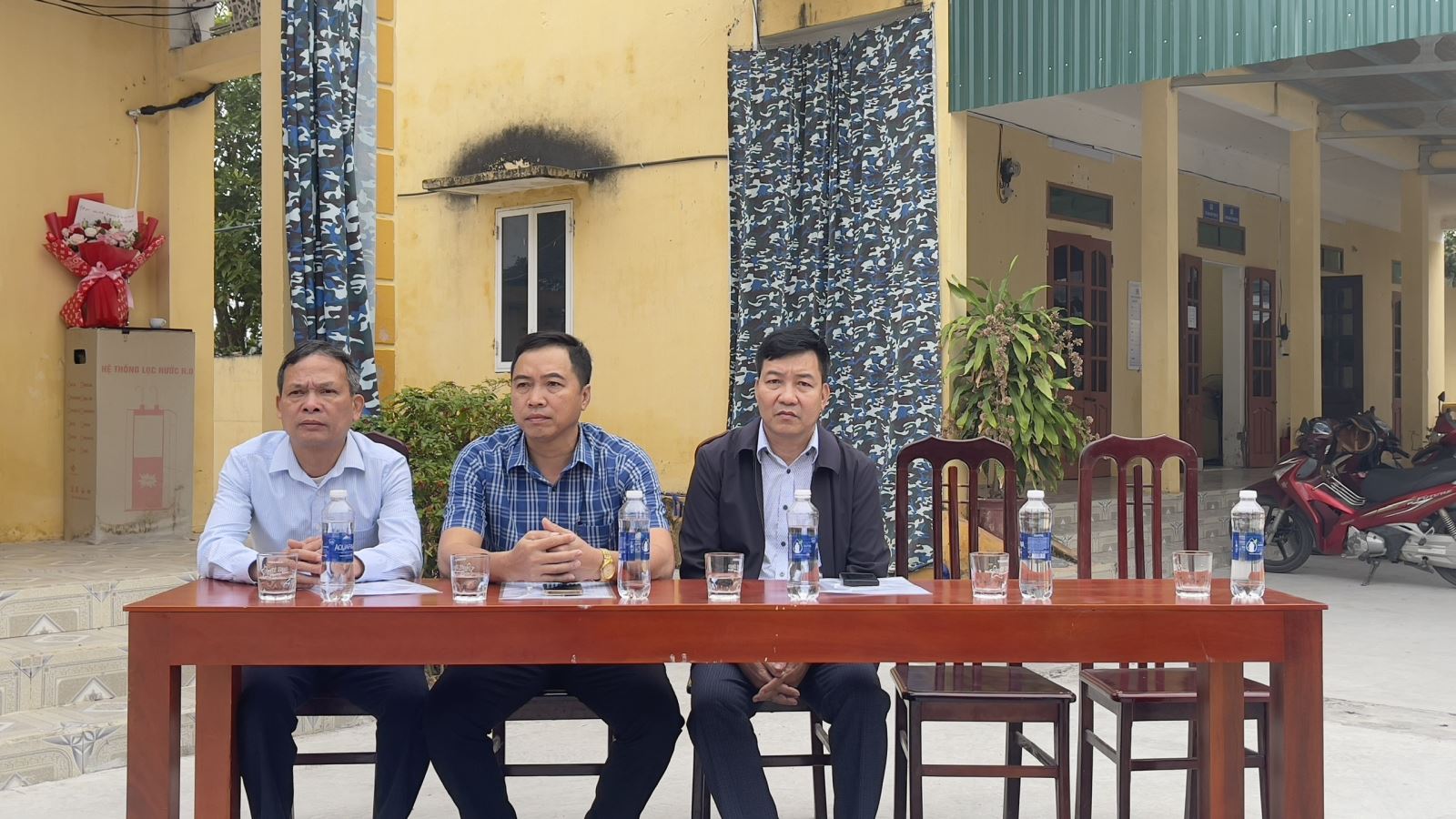 Đồng chí Nguyễn Văn Đạt – Bí thư Đảng ủy, Chủ tịch Hội đồng nhân dân xã và đồng chí Thượng tá Lê Đức Hải – Trưởng Công an xã tặng hoa động viên các lực lượng