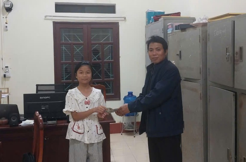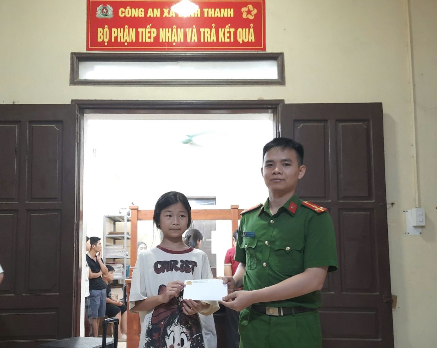 Ngay sau đó, em đã chủ động trình báo và giao nộp cho cán bộ trực ban Công an xã Bình Thanh. Sau khi tsiếp nhận thông tin, Công an xã tiến hành kiểm tra, xác minh và xác định số tiền trên là của anh Lưu Thanh Tâm (sinh năm 1983, trú tại thôn Nghĩa Môn, xã Bình Thanh) đánh rơi khi đến làm thủ tục cấp căn cước và định danh điện tử cho các con.