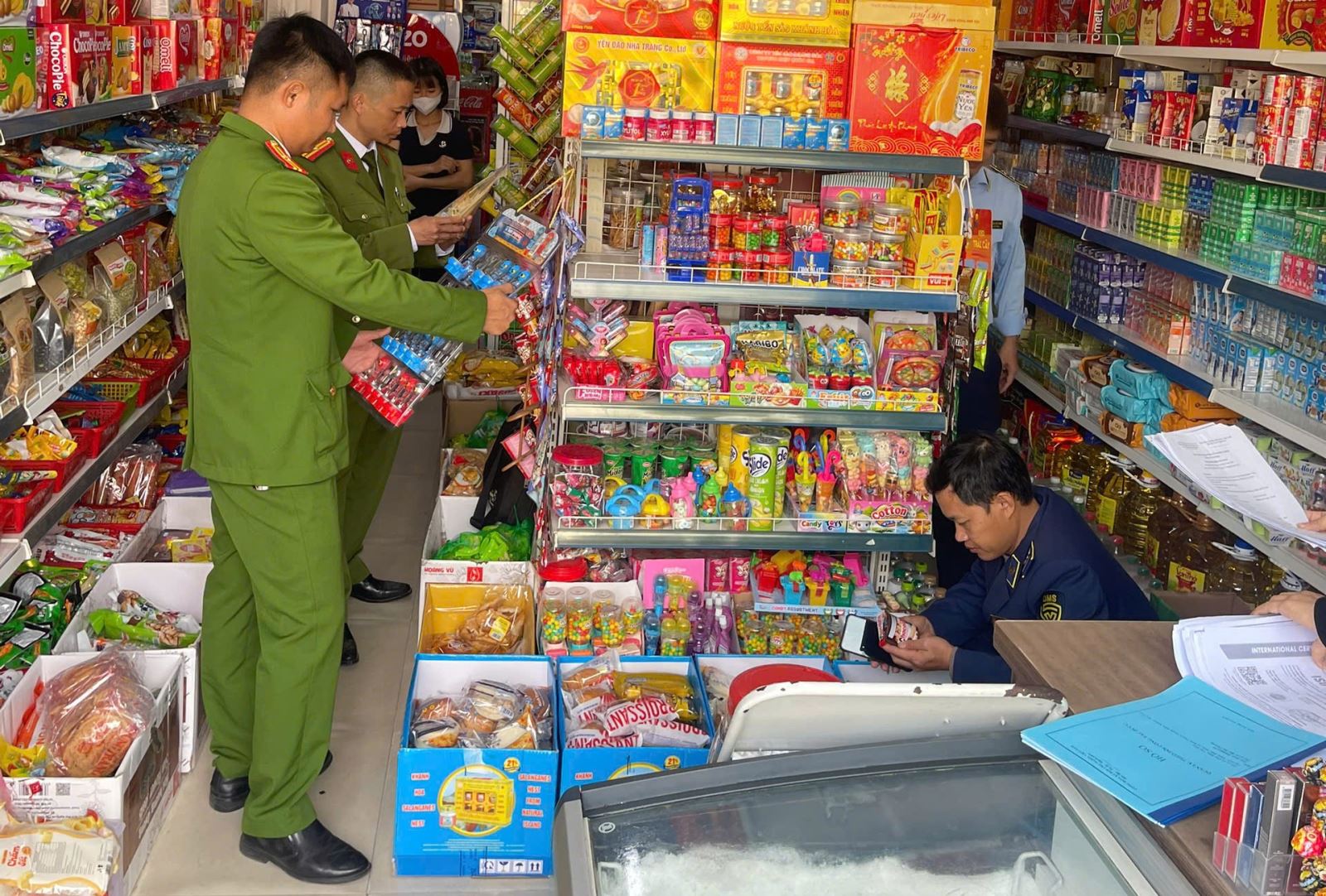 Công an xã phối hợp Quản lý thị trường kiểm tra nhãn mác, nguồn gốc xuất xứ hàng hoá tại các hộ kinh doanh