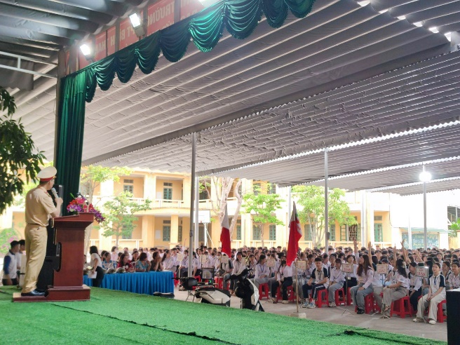 Không khí buổi tuyên truyền diễn ra sôi nổi với nhiều hoạt động giao lưu, hỏi đáp trực tiếp. Học sinh tích cực tham gia trả lời câu hỏi, xử lý tình huống giả định và được nhận những phần quà từ Ban tổ chức, qua đó vừa tiếp thu kiến thức vừa rèn luyện kỹ năng xử lý tình huống khi tham gia giao thông.