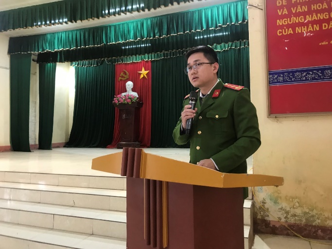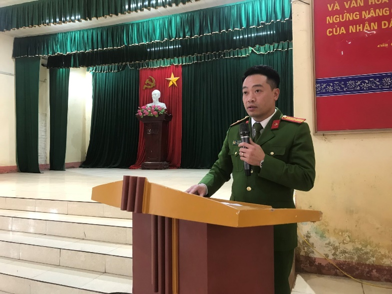 Đồng chí Thiếu tá Phạm Đức Tâm – Phó Trưởng Công an xã phát biểu chỉ đạo tại hội nghị