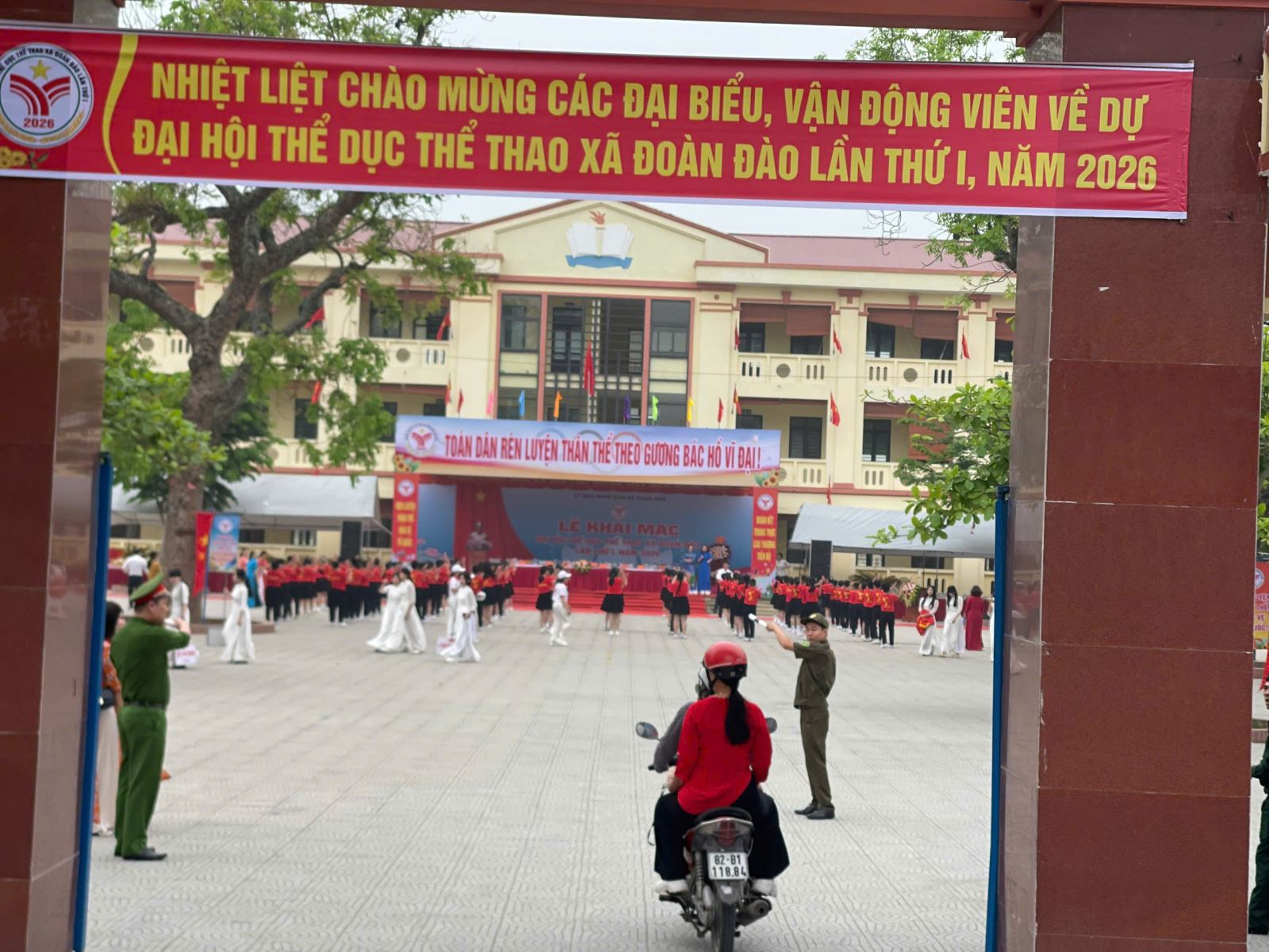 Bắt đầu từ 6 giờ 00 phút ngày 19/4/2026, Công an xã đã phân công cán bộ chiến sỹ thiết lập các chốt bảo vệ tại nơi diễn ra lễ khai mạc và các tuyến đường trọng điểm nhằm phân luồng, điều tiết giao thông, nhất là khu vực Cổng trường tiếp giáp với đường 38B không để xảy ra ùn tắc, va chạm giao thông, nhắc nhở người dân chấp hành nghiêm các quy định của pháp luật; không gây mất trật tự công cộng. Công tác kiểm tra, xử lý vi phạm được thực hiện nghiêm túc, đúng quy định và ngăn chặn các hành vi vi phạm pháp luật, không để phát sinh tình huống phức tạp.