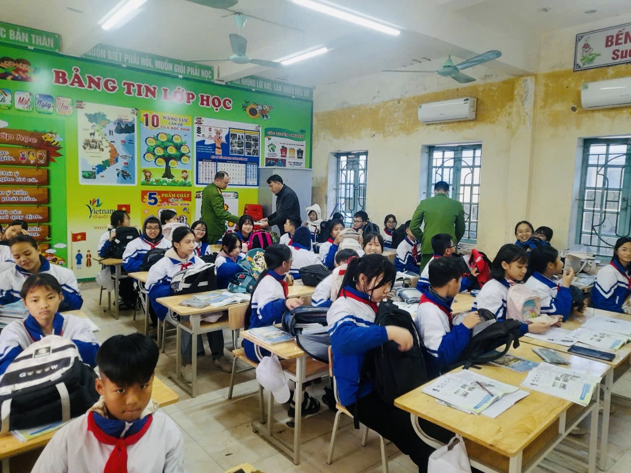 Buổi kiểm tra được tiến hành đồng bộ, đúng quy trình, với sự tham gia của cán bộ, giáo viên và đoàn viên. Lực lượng Công an xã đã tập trung kiểm tra ba lô, túi xách, tủ cá nhân và các vật dụng học sinh mang theo, nhằm kịp thời phát hiện, ngăn chặn các hành vi mang theo hung khí tự chế, vật sắc nhọn, chất cháy nổ, vật dụng có khả năng gây mất an toàn trong môi trường học đường. Qua kiểm tra hơn 550 học sinh, đa số chấp hành tốt quy định của nhà trường. Lực lượng chức năng đã phát hiện một số học sinh mang theo các vật dụng không phù hợp như bật lửa, dao gọt nhỏ, đã lập biên bản nhắc nhở, thu hồi và yêu cầu cam kết không tái phạm.
